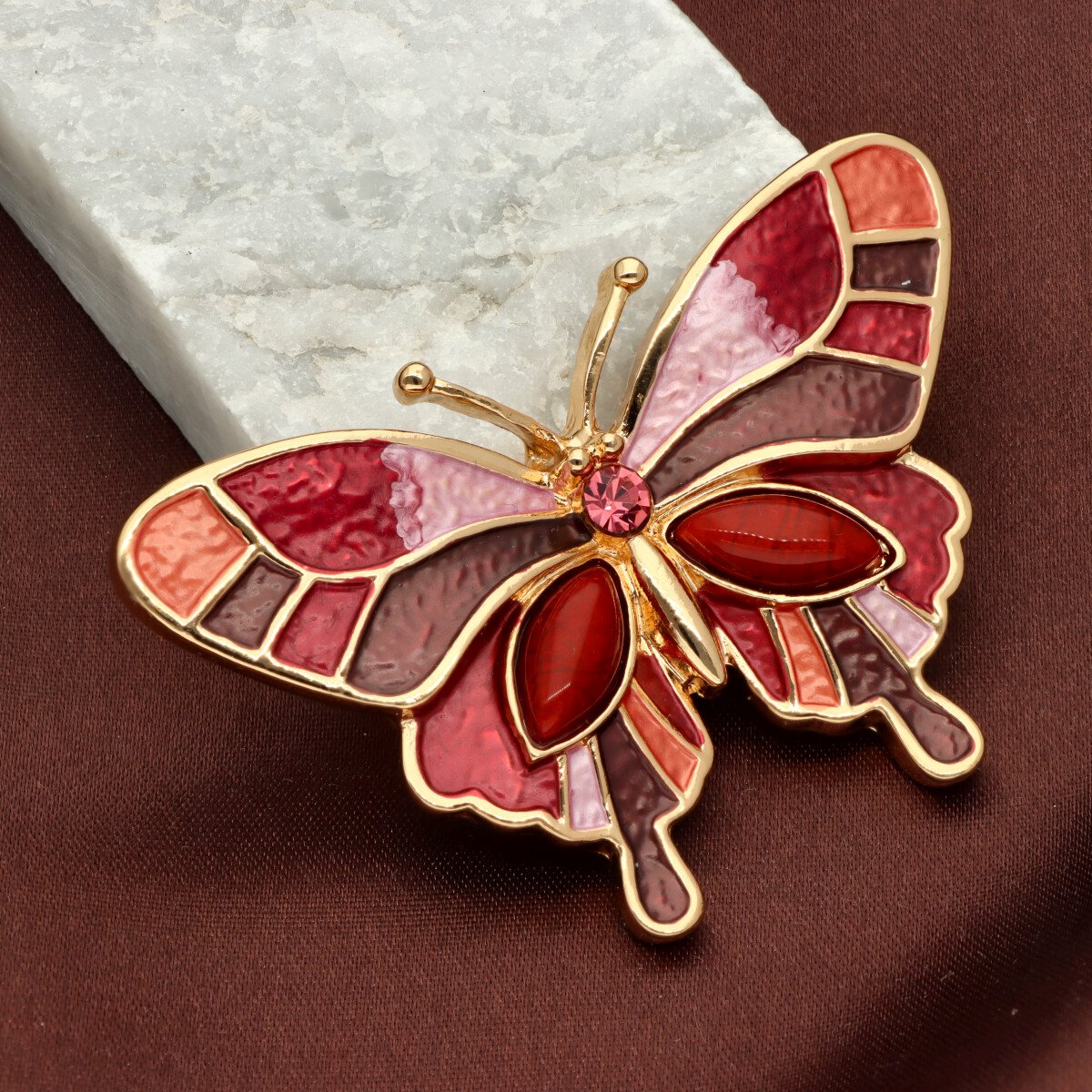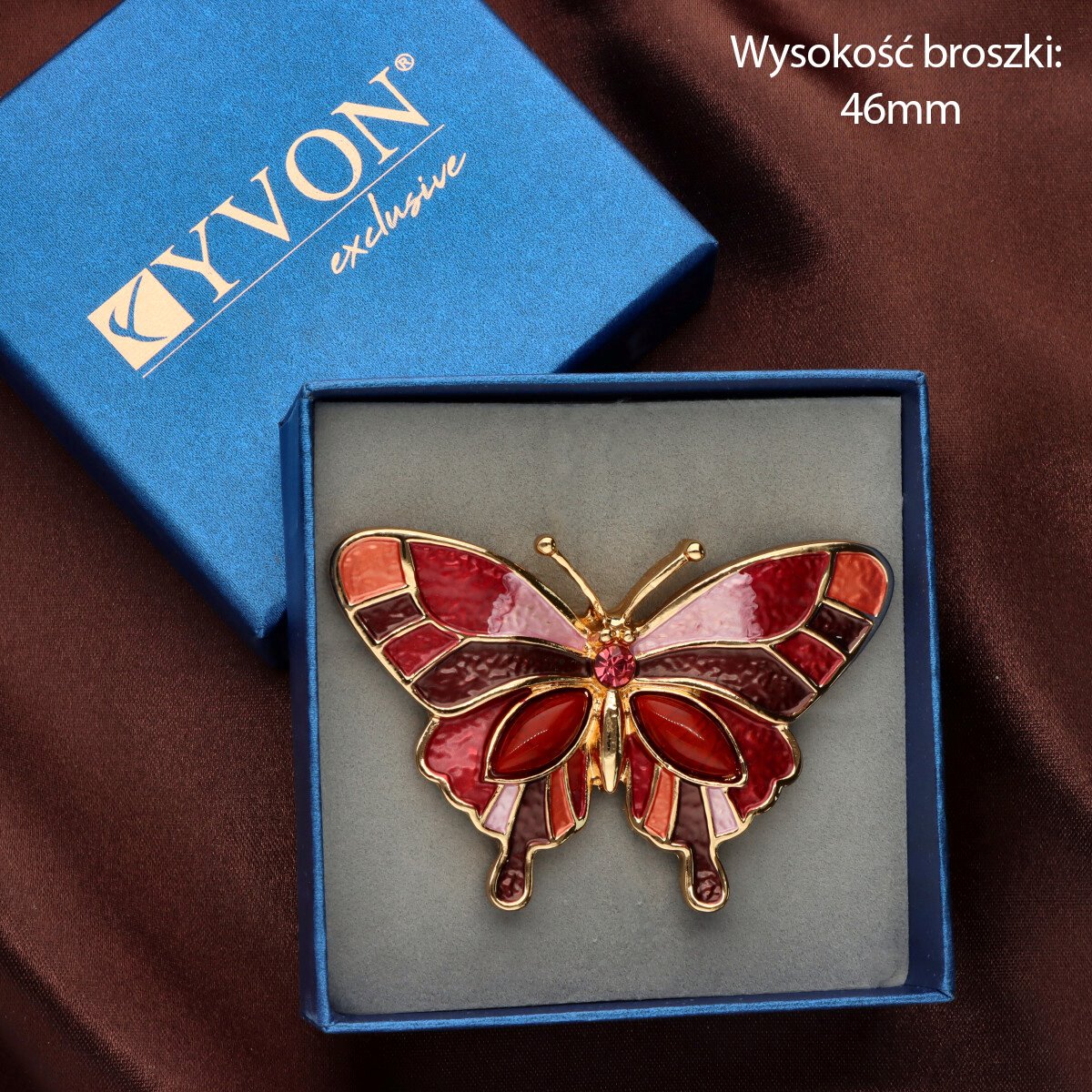 Broszka na magnes z kolekcji YVON biżuteria artystyczna, wykonana z metalu hipoalergicznego i zdobiona ręcznie nanoszoną emalią. Średnica broszki ok. 5 cm. Mocny magnes umożliwia przypięcie bez ryzyka uszkodzenia tkaniny – idealna do płaszczy, szali i torebek. Każdy egzemplarz pakowany jest w eleganckie pudełko prezentowe YVON.