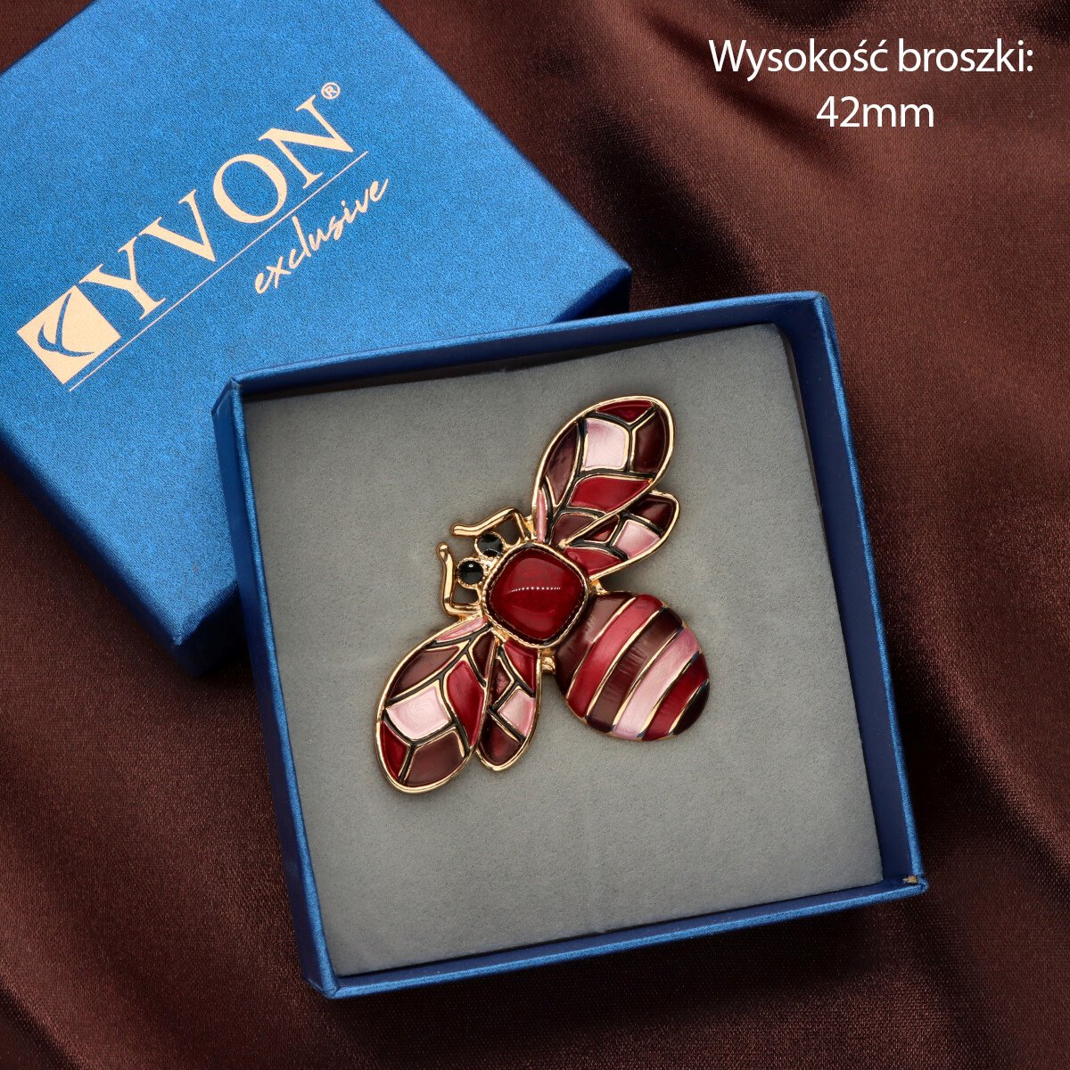 Broszka na magnes z kolekcji YVON biżuteria artystyczna, wykonana z metalu hipoalergicznego i zdobiona ręcznie nanoszoną emalią. Średnica broszki ok. 5 cm. Mocny magnes umożliwia przypięcie bez ryzyka uszkodzenia tkaniny – idealna do płaszczy, szali i torebek. Każdy egzemplarz pakowany jest w eleganckie pudełko prezentowe YVON.