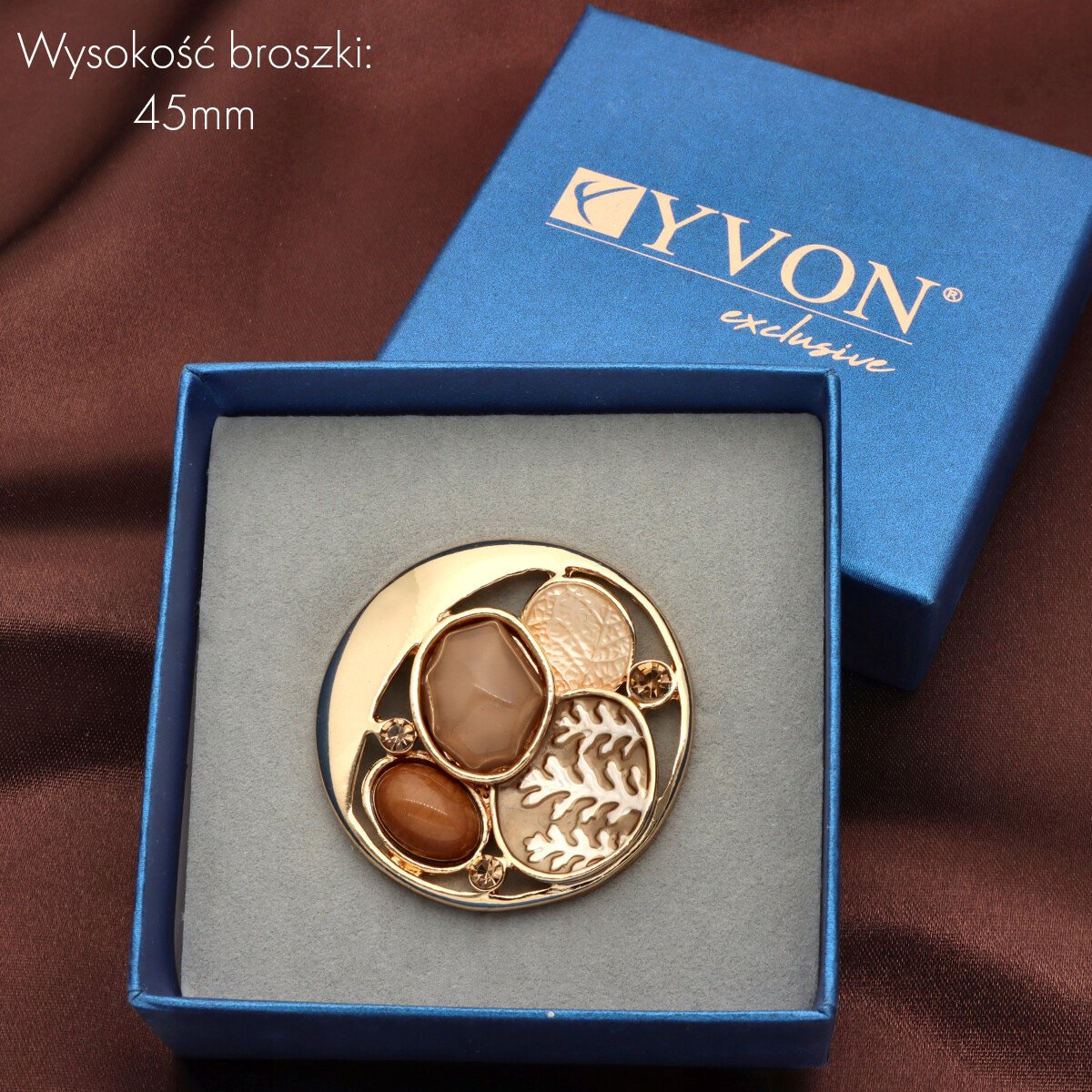 Broszka na magnes z kolekcji YVON biżuteria artystyczna, wykonana z metalu hipoalergicznego i zdobiona ręcznie nanoszoną emalią. Średnica broszki ok. 5 cm. Mocny magnes umożliwia przypięcie bez ryzyka uszkodzenia tkaniny – idealna do płaszczy, szali i torebek. Każdy egzemplarz pakowany jest w eleganckie pudełko prezentowe YVON.