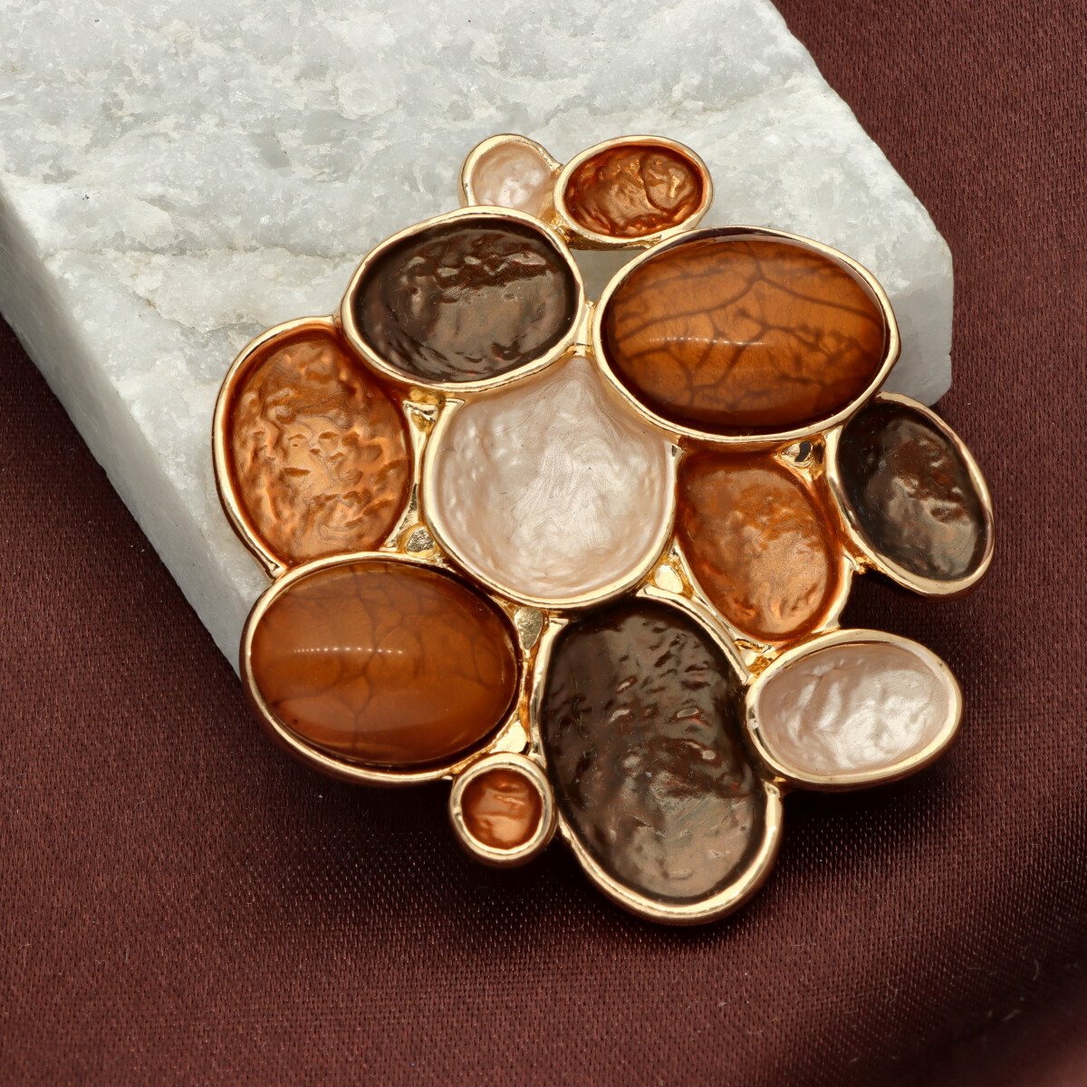 Broszka na magnes z kolekcji YVON biżuteria artystyczna, wykonana z metalu hipoalergicznego i zdobiona ręcznie nanoszoną emalią. Średnica broszki ok. 5 cm. Mocny magnes umożliwia przypięcie bez ryzyka uszkodzenia tkaniny – idealna do płaszczy, szali i torebek. Każdy egzemplarz pakowany jest w eleganckie pudełko prezentowe YVON.