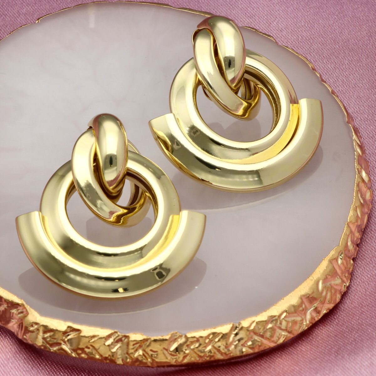 Stylowe kolczyki o geometrycznej formie, które doskonale sprawdzą się zarówno w codziennych, jak i bardziej wyrafinowanych stylizacjach. Model o długości około 2 cm subtelnie podkreśla urodę i dodaje elegancji. Kolczyki wykonane są z wysokiej jakości mosiądzu – materiału cenionego w jubilerstwie za trwałość, odporność na odkształcenia oraz estetyczny, szlachetny wygląd. Wykończone w modnym odcieniu light gold, inspirowanym włoskim złotem – jasnym, eleganckim kolorem, który obecnie dominuje w najnowszych trendach biżuteryjnych.