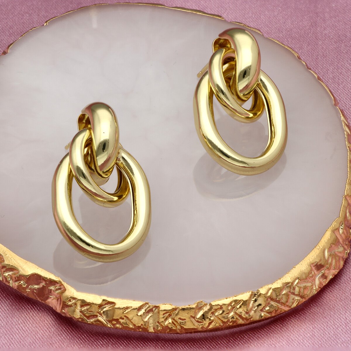 Stylowe kolczyki o geometrycznej formie, które doskonale sprawdzą się zarówno w codziennych, jak i bardziej wyrafinowanych stylizacjach. Model o długości około 2 cm subtelnie podkreśla urodę i dodaje elegancji. Kolczyki wykonane są z wysokiej jakości mosiądzu – materiału cenionego w jubilerstwie za trwałość, odporność na odkształcenia oraz estetyczny, szlachetny wygląd. Wykończone w modnym odcieniu light gold, inspirowanym włoskim złotem – jasnym, eleganckim kolorem, który obecnie dominuje w najnowszych trendach biżuteryjnych.