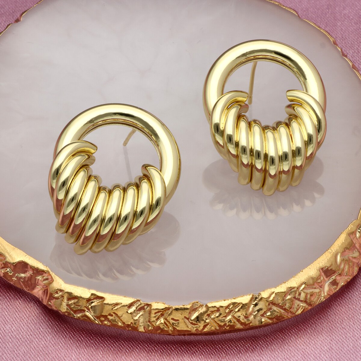 Stylowe kolczyki o geometrycznej formie, które doskonale sprawdzą się zarówno w codziennych, jak i bardziej wyrafinowanych stylizacjach. Model o długości około 2 cm subtelnie podkreśla urodę i dodaje elegancji. Kolczyki wykonane są z wysokiej jakości mosiądzu – materiału cenionego w jubilerstwie za trwałość, odporność na odkształcenia oraz estetyczny, szlachetny wygląd. Wykończone w modnym odcieniu light gold, inspirowanym włoskim złotem – jasnym, eleganckim kolorem, który obecnie dominuje w najnowszych trendach biżuteryjnych.