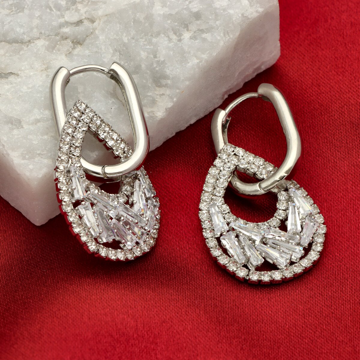 Wyjątkowe kolczyki wykonane z hipoalergicznego metalu na bazie mosiądzu, ozdobione wysokiej jakości cyrkoniami, które pięknie odbijają światło i nadają biżuterii eleganckiego blasku. To idealny wybór dla osób, które cenią sobie wyrafinowane dodatki podkreślające charakter stylizacji.