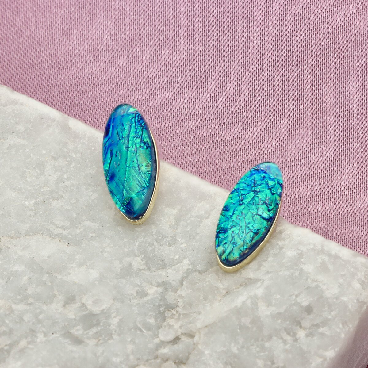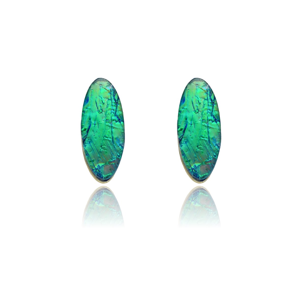 Opis produktu: Kolczyki o wielkości ok. 1,5 cm w formie smukłych, owalnych elementów. Minimalistyczna forma w połączeniu z wyrazistą strukturą nadaje im subtelnej elegancji. Wykonane z hipoalergicznego metalu (zamak – stop cynku, bezpieczny dla wrażliwej skóry) oraz żywicy z efektem głębi, która delikatnie odbija światło i nadaje im wyjątkowego charakteru. Do kompletu dostępny jest pasujący naszyjnik oraz bransoletka o tym samym indeksie numerycznym.