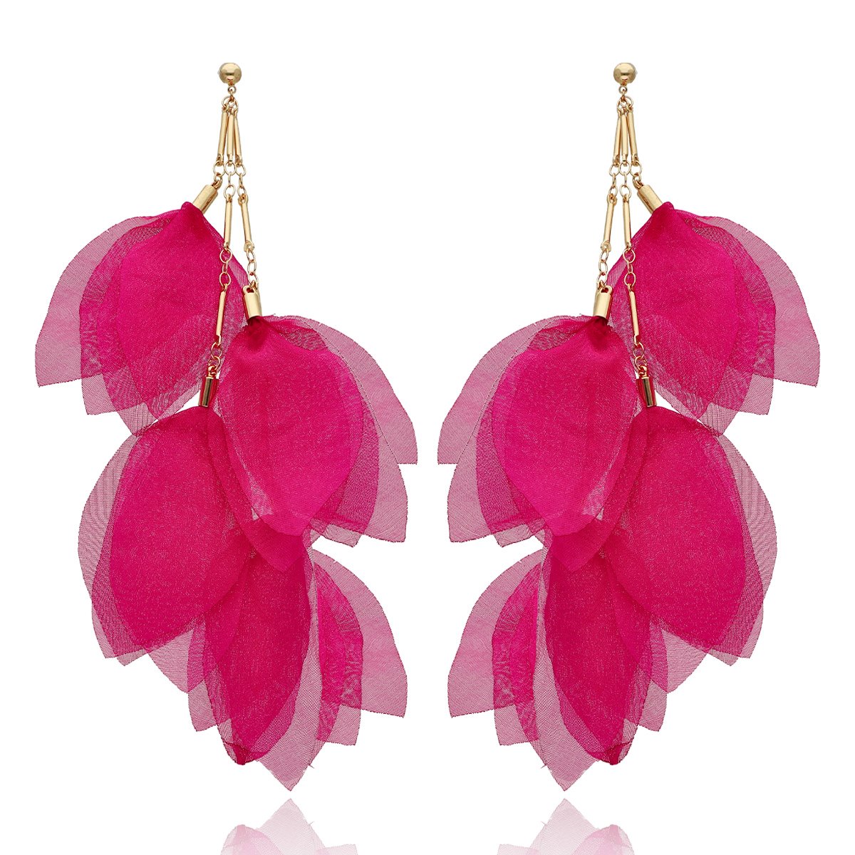 Wyjątkowo kobiece, uwodzicielskie kolczyki JEDWABNE KWIATY, lekkie i zwiewne, wykonane z antyalergicznego mosiadzu i stali szlachetnej 316 L (sztyfty). Długość ok. 11 cm.
