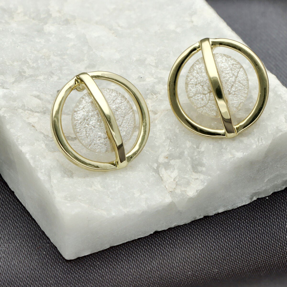 Eleganckie kolczyki wykonane z metalu antyalergicznego i metalu i żywicy jubilerskiej z efektem głębi. Długosć ok. 2 cm. Szukaj do kompletu bransoletki i naszyjnika o tym samym indeksie numerycznym.