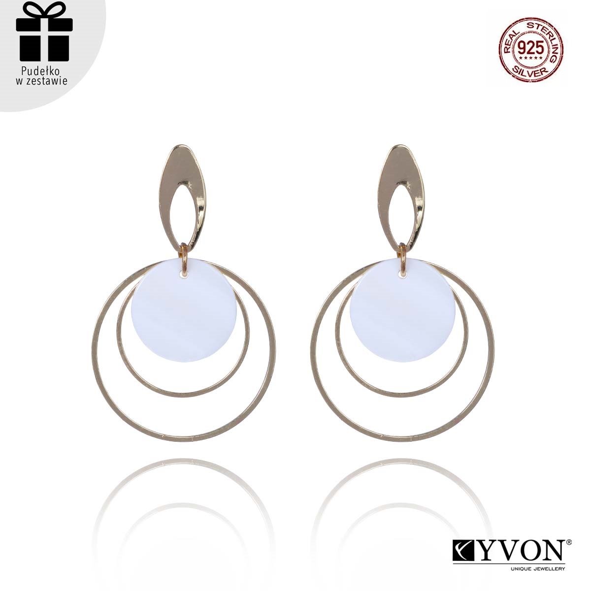 Wyjątkowo eleganckie kolczyki z muszli naturalnej w kolorze złota! Wykonane z najwyższej jakości materiałów - muszli naturalnych oraz SREBRA próby 925 (sztyfty) i mosiadzu. Mogą być noszona przez kobiety o wyjątkowo delikatnej skórze - bizuteria YVON jest w 100% antyalergiczna. Kolor: złoty. EKSKLUZYWNE PUDEŁKO W ZESTAWIE!