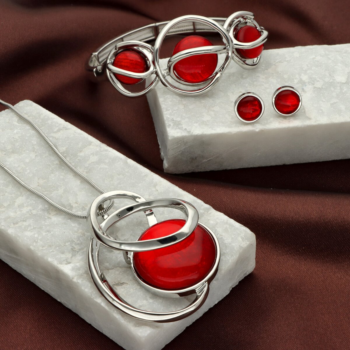 Eleganckie kolczyki wykonane z metalu antyalergicznego i żywicy. Długosć ok. 1,5 cm. Szukaj do kompletu bransoletki i naszyjnika o tym samym indeksie numerycznym.