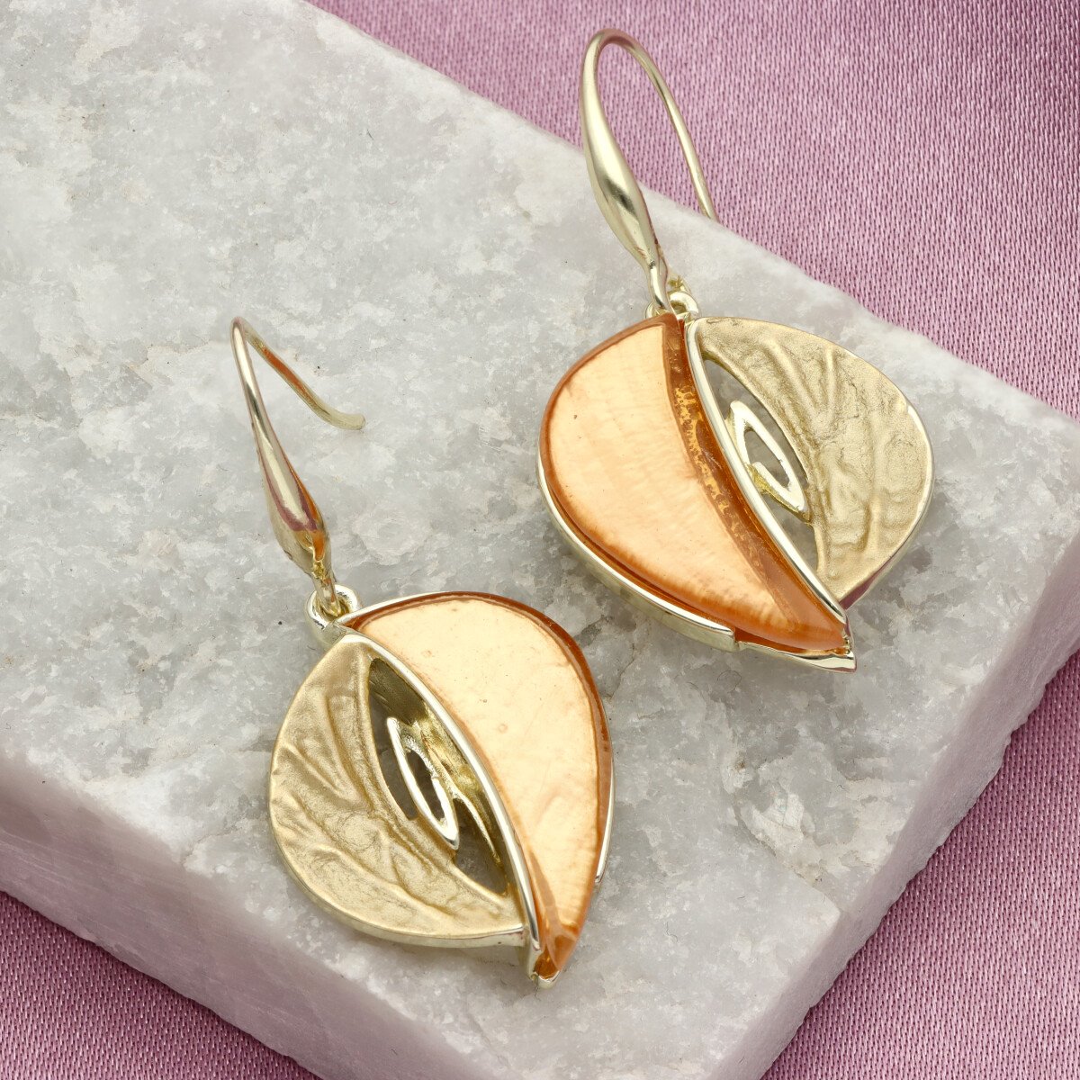 Opis produktu: Kolczyki o długości ok. 3 cm w formie nowoczesnych liści o niestandardowej, przestrzennej budowie. Ich oryginalny kształt sprawia, że pięknie odbijają światło i stanowią wyrazisty element stylizacji. Wykonane z hipoalergicznego metalu (zamak – stop cynku, bezpieczny dla wrażliwej skóry), kolorowej emalii oraz żywicy z efektem głębi, mieniącej się jak opal. Do kompletu dostępny jest pasujący naszyjnik oraz bransoletka o tym samym indeksie numerycznym.