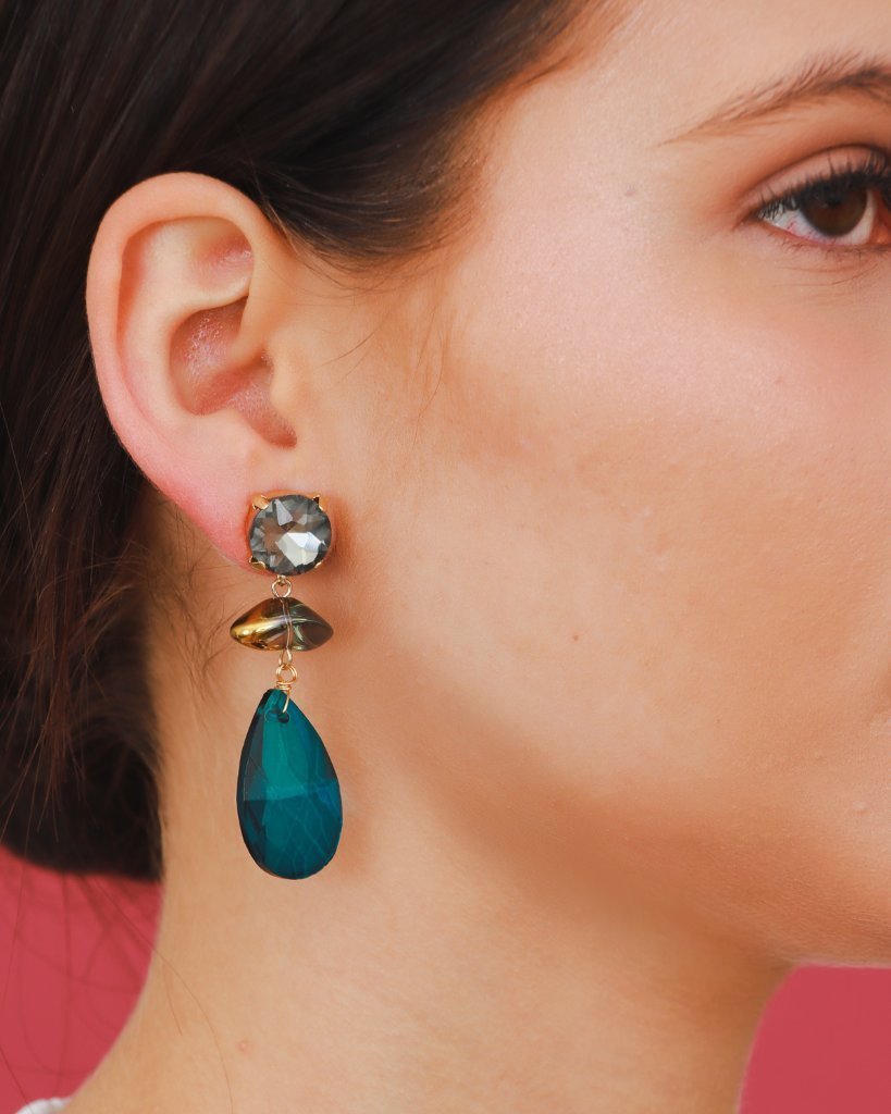 Kolczyki Stella Drop to połączenie subtelnej klasyki z blaskiem fasetowanego szkła. Wykonane ze szkła szlifowanego z efektem ombre, w oprawie z metalu antyalergicznego. Długość ok. 5,5 cm. Całość sprawia, że pięknie eksponują się na uchu, dodając elegancji zarówno wieczorowym, jak i codziennym stylizacjom.