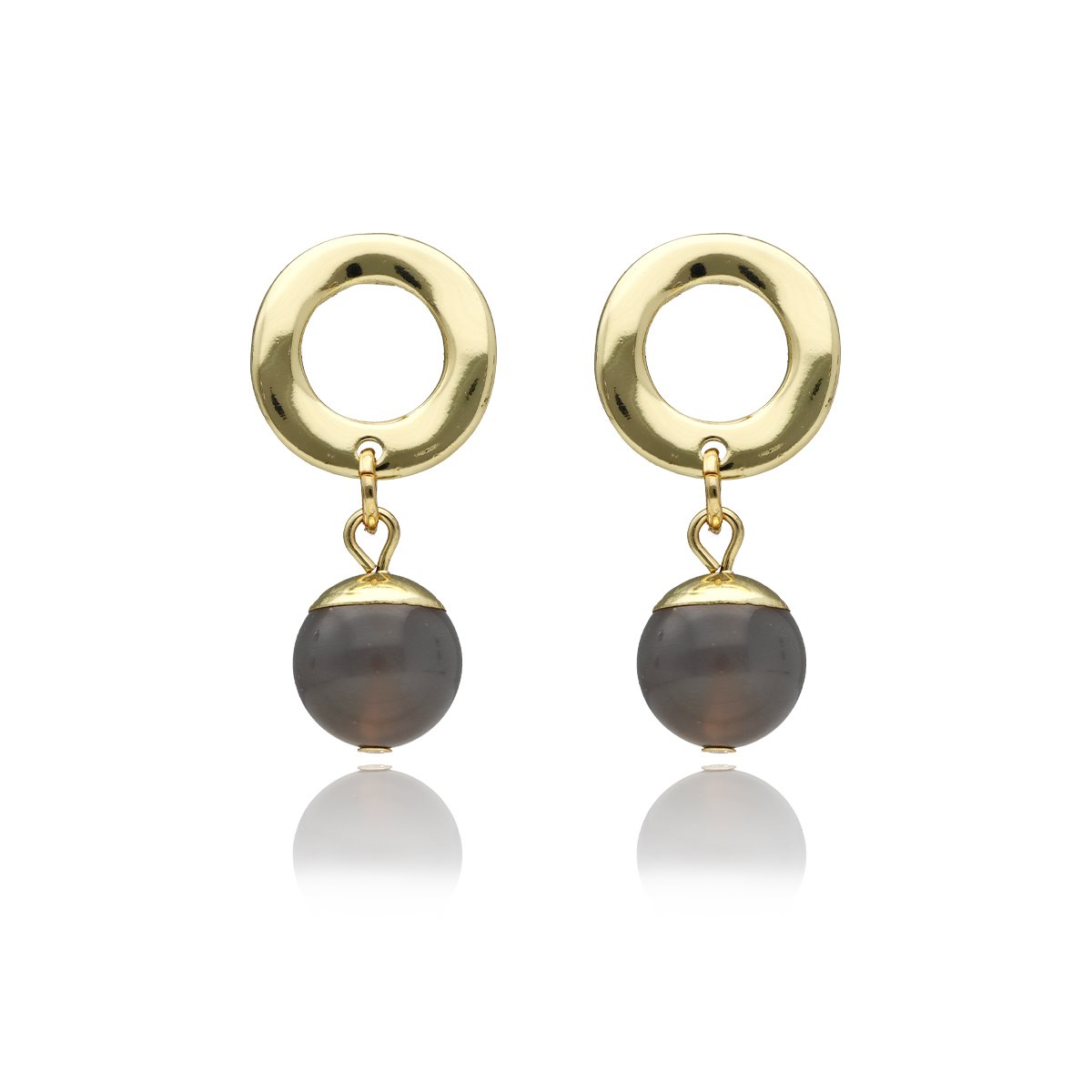 Eleganckie kolczyki z naturalnym agatem szarym to połączenie klasyki i nowoczesnej formy. Gładkie kamienie w głębokim, szarym odcieniu w zestawieniu ze złotymi elementami tworzą wyrazistą, a jednocześnie uniwersalną kompozycję.