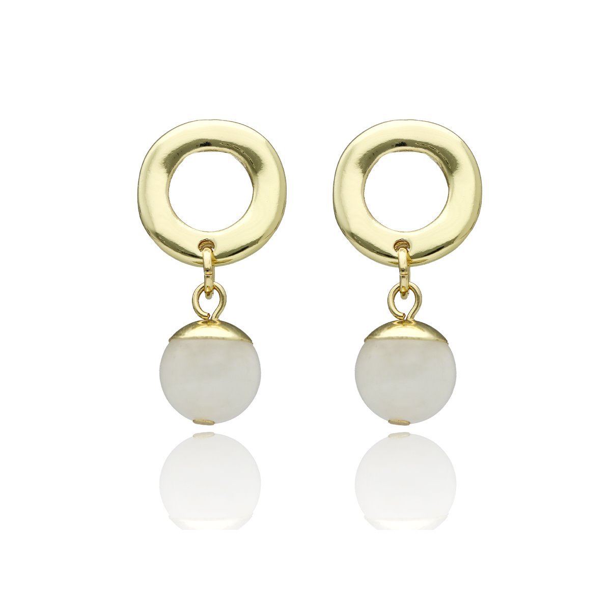Eleganckie kolczyki z naturalnym jadeitem mlecznym łączą minimalistyczną formę z klasycznym wykończeniem. Jasne kamienie w zestawieniu ze złotymi elementami tworzą lekką, kobiecą i uniwersalną kompozycję.