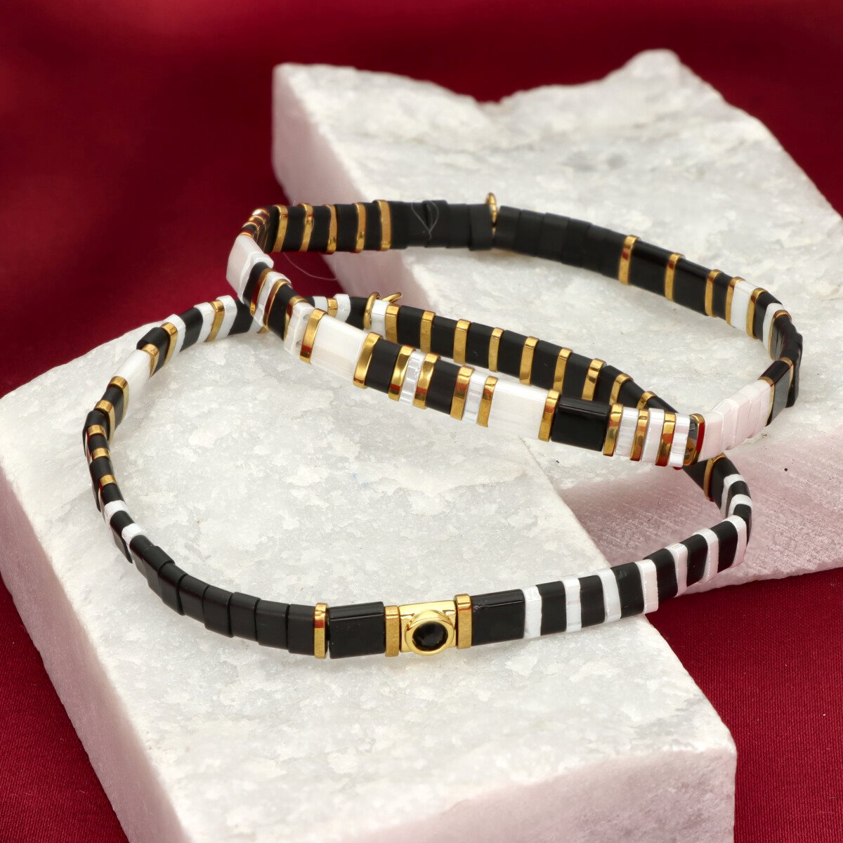 Zestaw dwóch oryginalnych bransoletek wykonanych z oryginalnych japońskich koralików Tila, znanych z wyjątkowej precyzji i perfekcyjnego wykończenia. Minimalistyczna forma i subtelny połysk nadają im nowoczesny, a jednocześnie ponadczasowy charakter. Bransoletki doskonale prezentują się noszone razem lub osobno, stanowiąc efektowny akcent każdej stylizacji. W eleganckim pudełku YVON Exclusive, stanowią idealny pomysł na prezent.