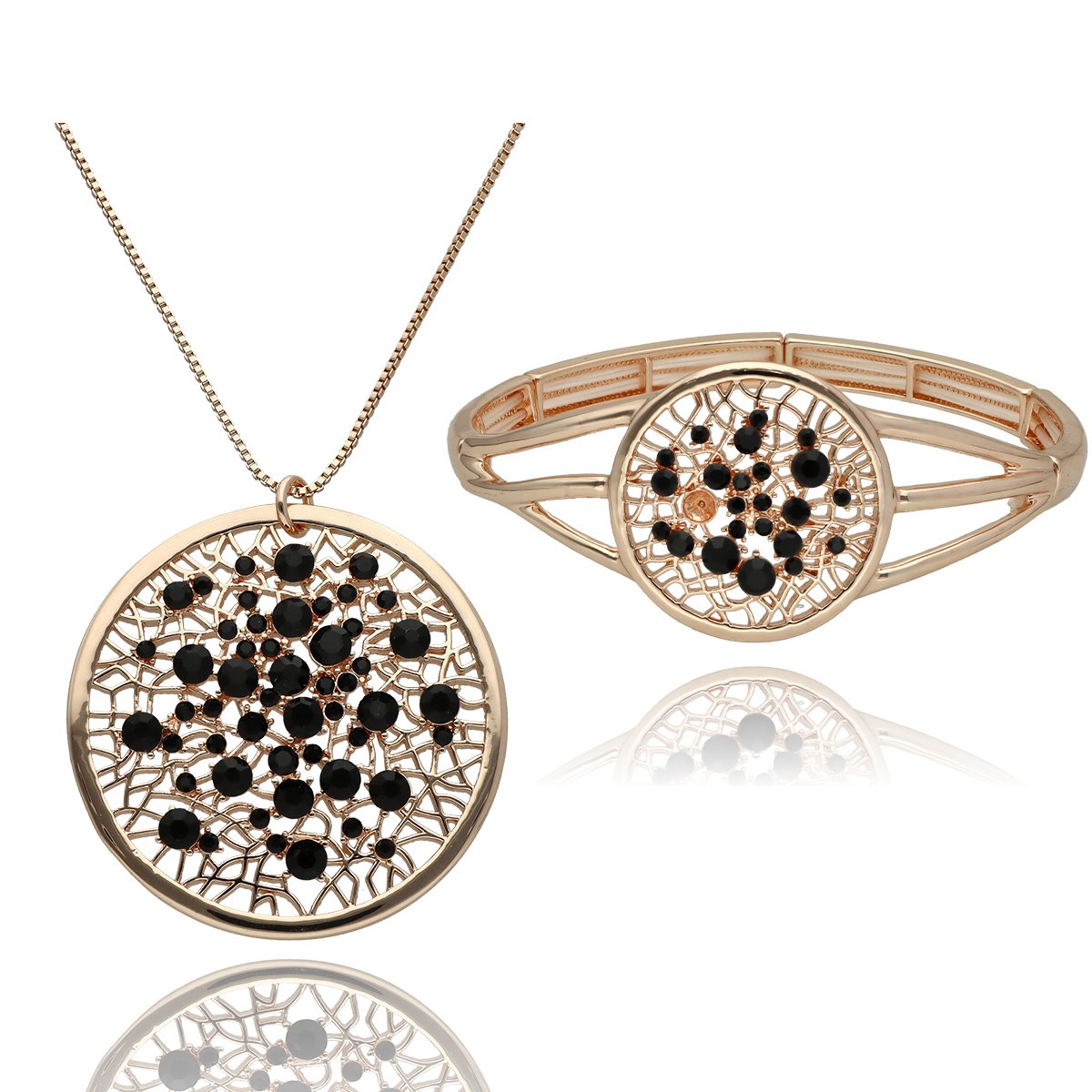 Zestaw biżuterii Clarisse z kolekcji YVON Exclusive zachwyca misternym wzorem o strukturze delikatnej siateczki, ozdobionej drobnymi cyrkoniami. Każdy detal został wykonany z precyzją charakterystyczną dla biżuterii klasy premium. Komplet powstał z wysokiej jakości zamaku – hipoalergicznego stopu metali szeroko stosowanego w jubilerstwie, co gwarantuje trwałość i bezpieczeństwo noszenia. To biżuteria, która łączy subtelność z elegancją, stanowiąc efektowny akcent do każdej stylizacji. Naszyjnik ma długość 45 cm + 8 cm regulacja, natomiast bransoletka jest rozchylana, dzięki czemu łatwo dopasowuje się do nadgarstka. Całość zaprezentowana jest w luksusowym, czerwonym pudełku prezentowym YVON, które jest gratis.