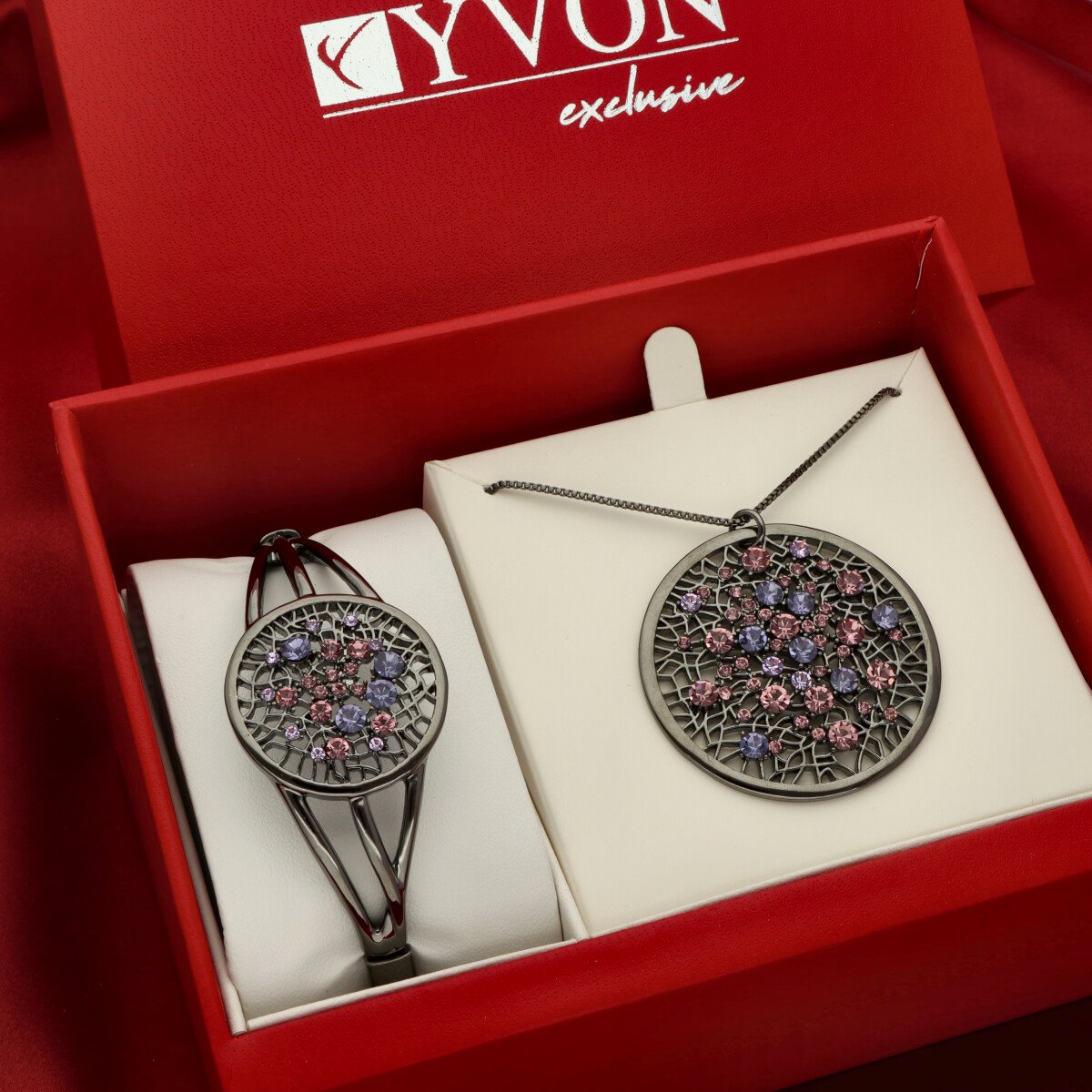 Zestaw biżuterii Clarisse z kolekcji YVON Exclusive zachwyca misternym wzorem o strukturze delikatnej siateczki, ozdobionej drobnymi cyrkoniami. Każdy detal został wykonany z precyzją charakterystyczną dla biżuterii klasy premium. Komplet powstał z wysokiej jakości zamaku – hipoalergicznego stopu metali szeroko stosowanego w jubilerstwie, co gwarantuje trwałość i bezpieczeństwo noszenia.