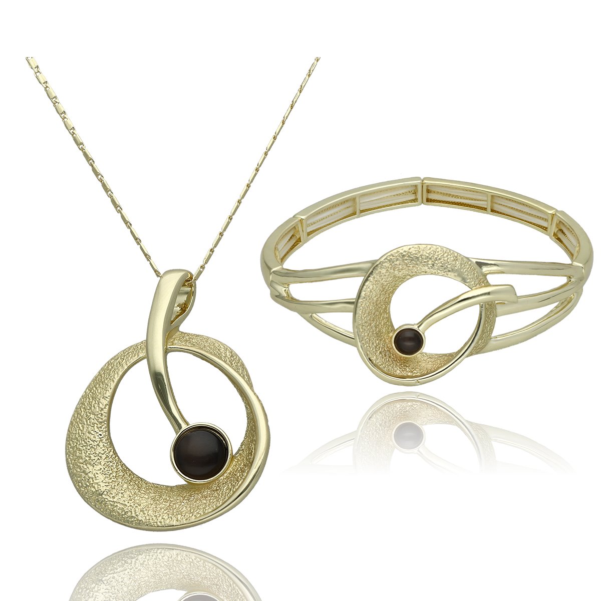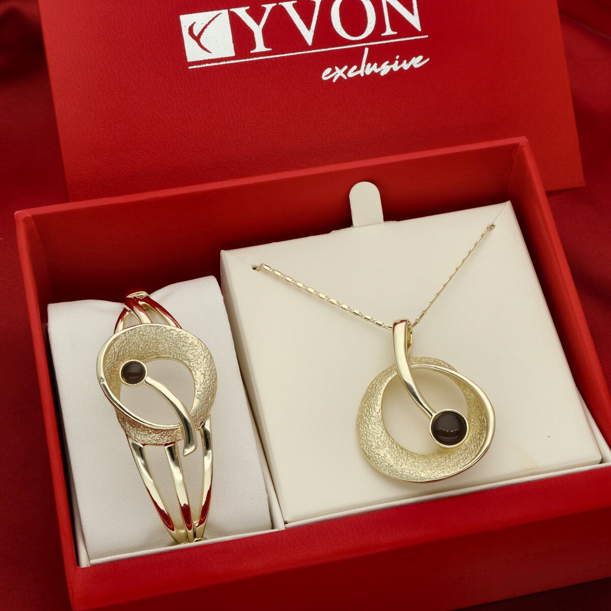 Zestaw biżuterii Eloria z kolekcji YVON Exclusive to elegancki komplet wykonany z wysokiej jakości zamaku – hipoalergicznego stopu metali stosowanego w jubilerstwie. Subtelne elementy ozdobne uzupełnia naturalny kamień kwarcu, który dodaje całości szlachetnego charakteru. Lekko matowa, szczotkowana powierzchnia metalu pięknie kontrastuje z gładkim połyskiem detali, tworząc nowoczesny, a zarazem ponadczasowy efekt.