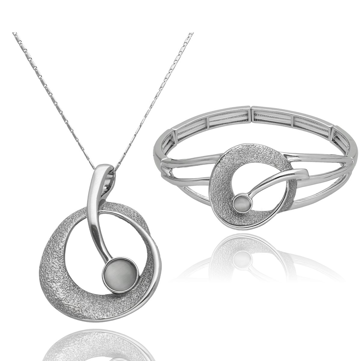 Biżuteria jest w 100% hipoalergiczna, nie zawiera niklu, kadmu ani ołowiu. Naszyjnik ma długość 45 cm + 8 cm regulacja, natomiast bransoletka jest rozchylana, co umożliwia wygodne dopasowanie do nadgarstka.