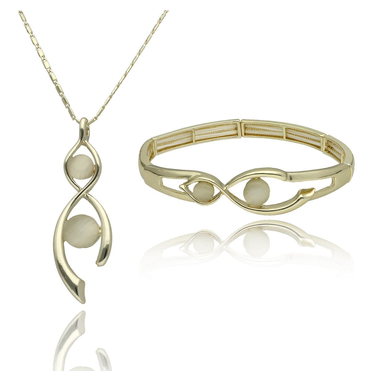 Biżuteria jest w 100% antyalergiczna i bezpieczna dla skóry. Naszyjnik ma długość 45 cm + 8 cm regulacja, bransoletka posiada rozmiar uniwersalny na elastycznych gumkach, dopasowujących się do każdej ręki.