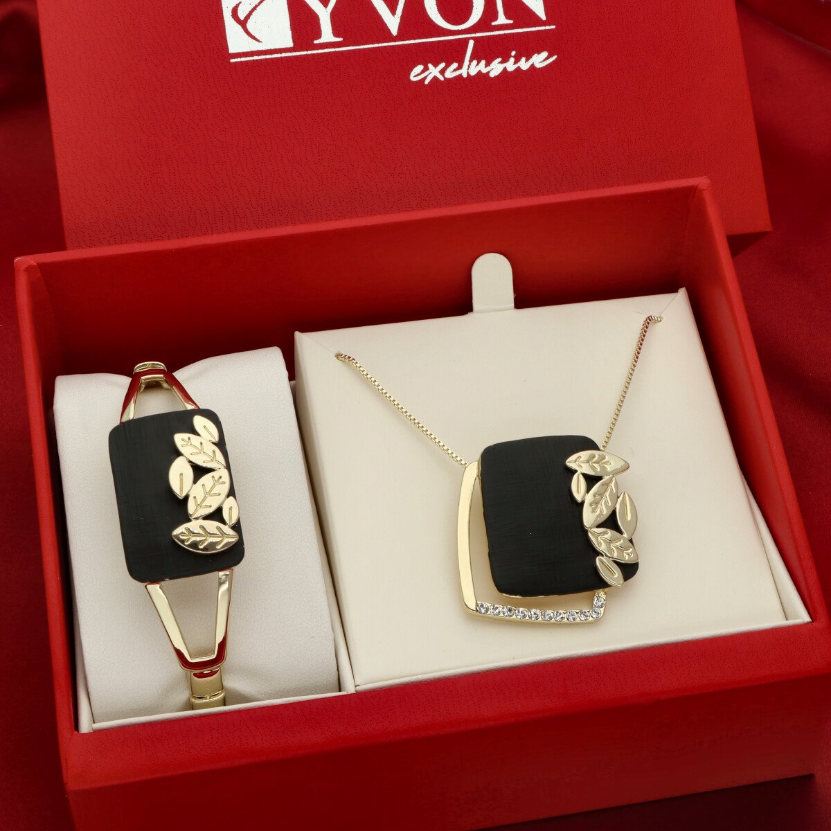 Całość zaprezentowana w eleganckim, czerwonym pudełku prezentowym YVON, które jest gratis.