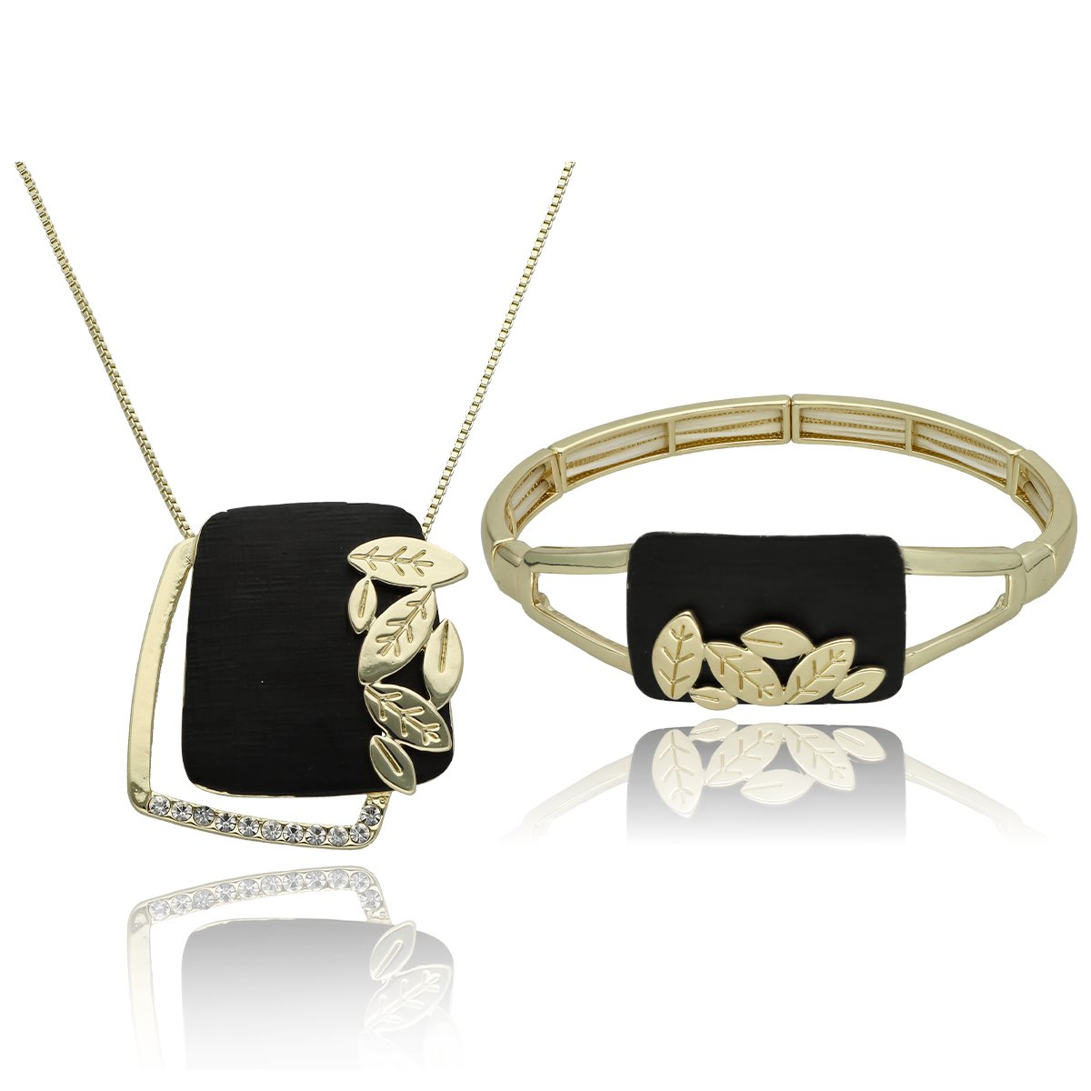 Zestaw biżuterii YVON Exclusive wykonany z wysokiej jakości zamaku oraz ręcznie nanoszonej emalii. Powierzchnia metalu została szczotkowana, co nadaje całości subtelny, elegancki charakter. Motyw liści dodaje biżuterii naturalnego wdzięku i delikatności. Każdy element został starannie wykończony, dzięki czemu komplet prezentuje się nowocześnie i z klasą.