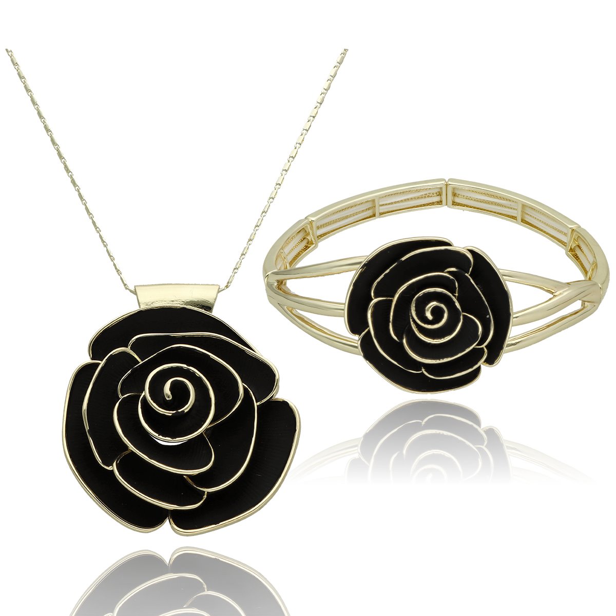Zestaw biżuterii YVON Exclusive wykonany z wysokiej jakości zamaku, hipoalergicznego stopu metali szeroko stosowanego w jubilerstwie. Elementy ozdobne pokryte są ręcznie nanoszoną emalią, która nadaje biżuterii wyjątkowy połysk i trwałość. Każdy detal został starannie wykończony, tworząc elegancki komplet o nowoczesnej formie. Biżuteria jest w 100% hipoalergiczna, bez niklu, kadmu i ołowiu, dzięki czemu jest bezpieczna dla skóry. Naszyjnik ma długość 45 cm + 8 cm regulacja, natomiast bransoletka posiada rozmiar uniwersalny na elastycznych gumkach, dopasowujących się do każdej ręki. Całość zaprezentowana jest w efektownym, czerwonym pudełku prezentowym YVON, które jest gratis.