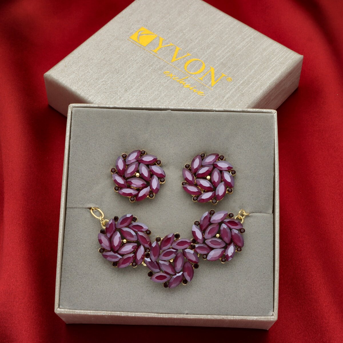 Uroczy, niezwykle kobiecy zestaw biżuterii wizytowej, który subtelnie podkreśla elegancję stylizacji. Komplet składa się z regulowanej bransoletki oraz efektownych kolczyków o długości ok 3 cm, które pięknie wysmuklają szyję i dodają lekkości całej sylwetce.