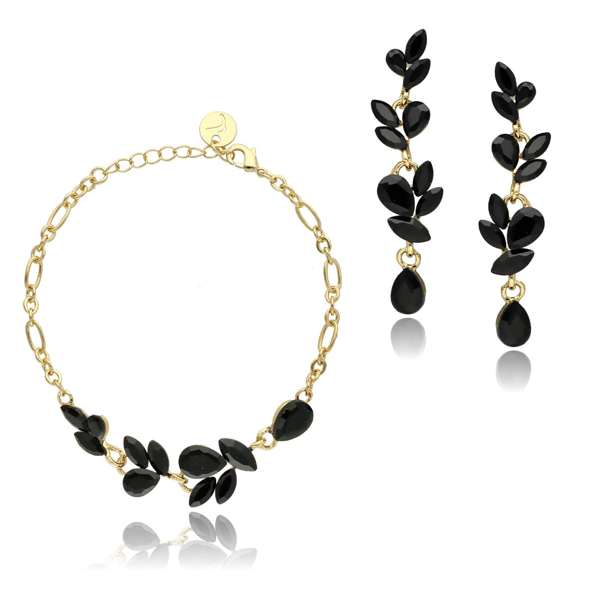 Uroczy, niezwykle kobiecy zestaw biżuterii wizytowej, który subtelnie podkreśla elegancję stylizacji. Komplet składa się z regulowanej bransoletki oraz efektownych kolczyków o długości 6 cm, które pięknie wysmuklają szyję i dodają lekkości całej sylwetce. Biżuteria została wykonana z metalu HIPOALERGICZNEGO oraz szkła fasetowanego dymionego, dzięki czemu delikatnie odbija światło i tworzy elegancki, szlachetny efekt. To idealna propozycja na przyjęcia, uroczystości rodzinne, wesela oraz inne wyjątkowe okazje. Całość zapakowana jest w prześliczne PUDEŁKO, dzięki czemu komplet doskonale sprawdzi się również jako gotowy pomysł na PREZENT.