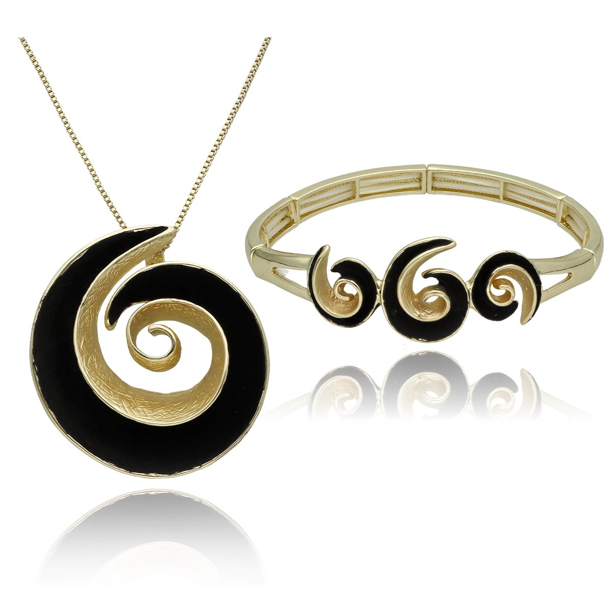 Zestaw biżuterii YVON Exclusive wykonany z wysokiej jakości zamaku, hipoalergicznego stopu metali szeroko stosowanego w jubilerstwie. Elementy ozdobne pokryte są ręcznie nanoszoną emalią, która nadaje biżuterii wyjątkowy połysk i trwałość. Każdy detal został starannie wykończony, tworząc elegancki komplet o nowoczesnej formie.