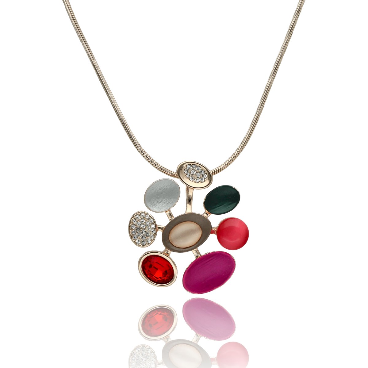 Uroczy, dekoltowy naszyjnik wykonany z antyalergicznego metalu, kwarcu, szkła kryształowego i cyrkonii. Długość 45 cm + 8 cm regulacja. Szukaj do kompletu bransoletki i kolczyków o tym samym indeksie numerycznym.