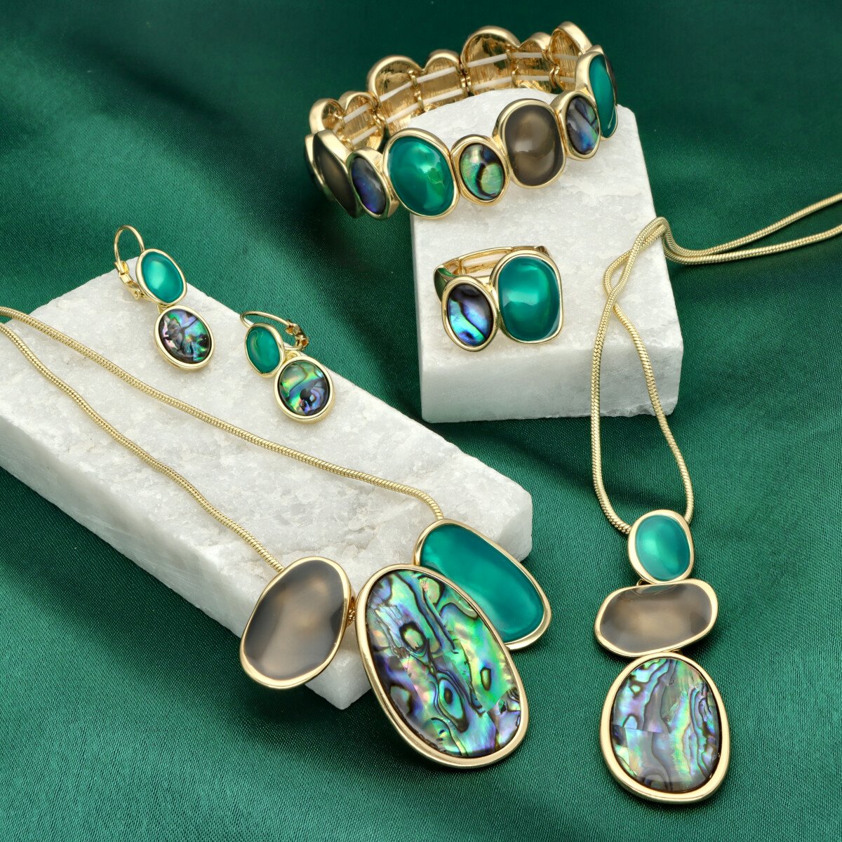 Wyjątkowy naszyjnik dekoltowy wykonany z kolorowej żywicy, emalii i muszli naturalnej. Hipoalergiczny. Długość bazowa 45 cm z możliwością regulacji (+8 cm) pozwala na idealne dopasowanie do różnych stylizacji.