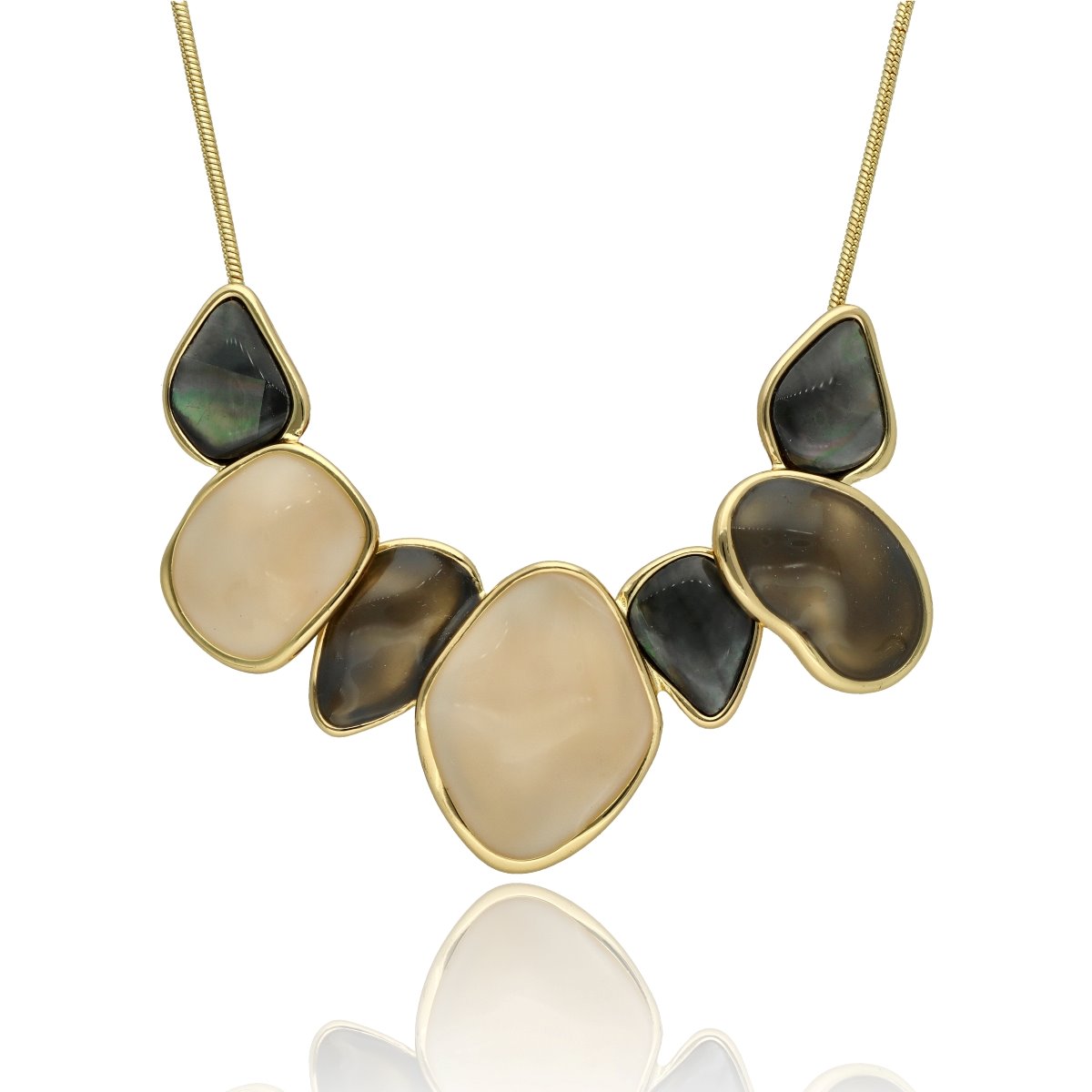 Naszyjnik dekoltowy z żywicy, emalii i muszli naturalnej – długość 45 cm + 8 cm regulacji. Ozoba ma 10 cm szerokości.