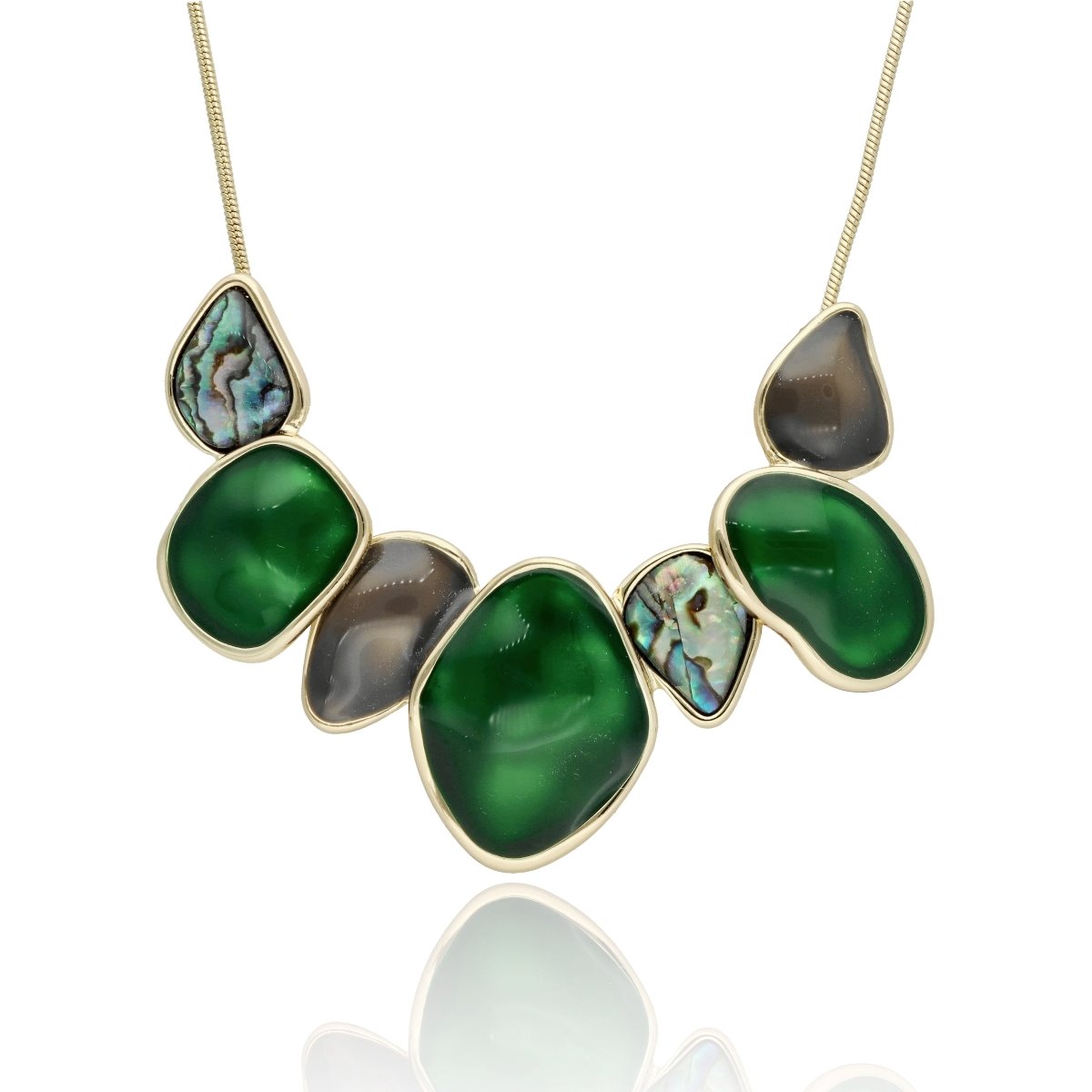 Wyjątkowy naszyjnik dekoltowy wykonany z kolorowej żywicy, emalii i muszli naturalnej. Hipoalergiczny. Długość bazowa 45 cm z możliwością regulacji (+8 cm) pozwala na idealne dopasowanie do różnych stylizacji.