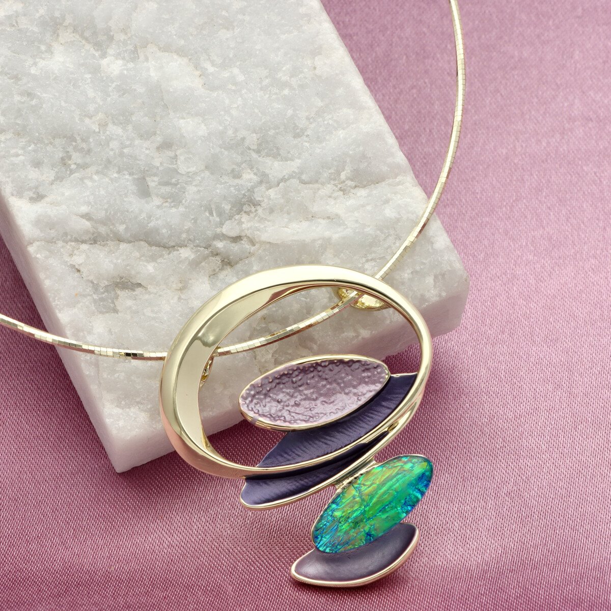 Opis produktu: Naszyjnik o długości 42 cm + 8 cm przedłużki, z ozdobnym elementem o długości ok. 5 cm. Nowoczesna, przestrzenna forma oparta na geometrycznym okręgu i nieregularnych wypełnieniach tworzy wyjątkową, artystyczną kompozycję. Naszyjnik wykonany z hipoalergicznego metalu (zamak – stop cynku, bezpieczny dla wrażliwej skóry), ozdobiony kolorową emalią oraz żywicą z efektem głębi. Zróżnicowane faktury i powierzchnie nadają biżuterii elegancki i przyciągający uwagę charakter. Do kompletu szukaj pasującej bransoletki i kolczyków o tym samym indeksie numerycznym.