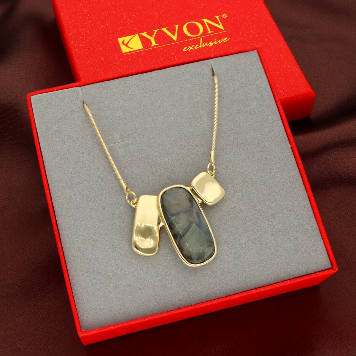 Naszyjnik zapakowany jest w efektowne czerwone pudełko.