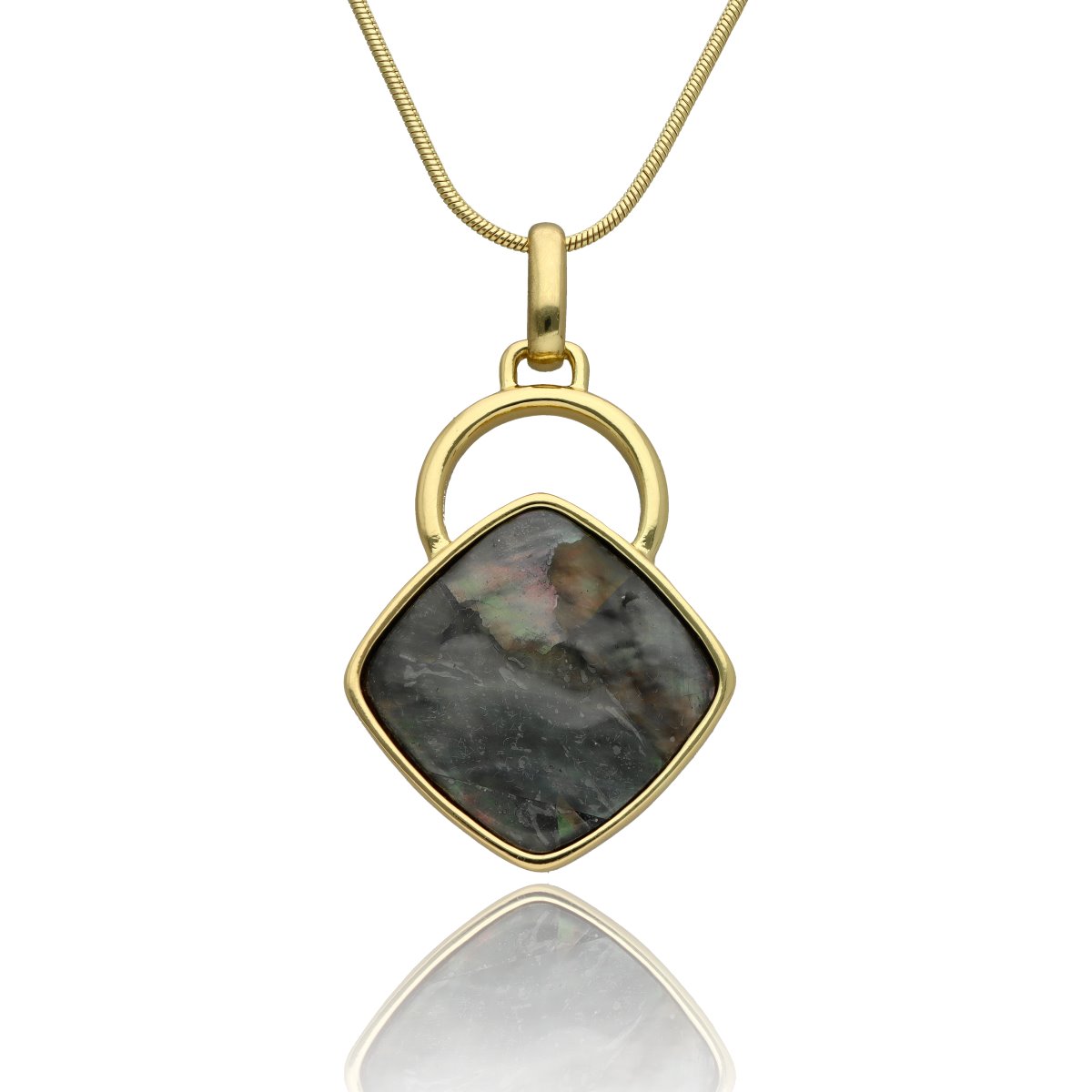 Elegancki, długi naszyjnik wykonany z metalu antyalergicznego, ozdobiony efektowną zawieszką o długości ok. 5 cm. Zawieszka została wykonana z naturalnej muszli szarej, tworząc harmonijne, przyciągające uwagę połączenie.