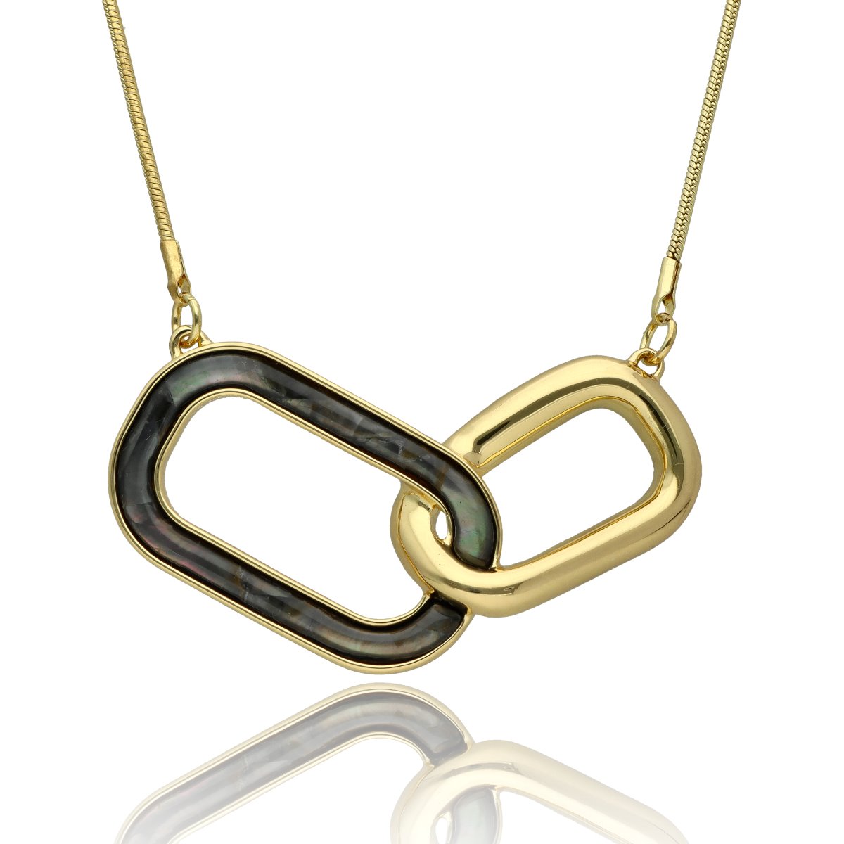 Elegancki, krótki naszyjnik wykonany z metalu antyalergicznego, ozdobiony efektowną zawieszką o długości ok. cm. Zawieszka została wykonana z naturalnej muszli szarej, tworząc harmonijne, przyciągające uwagę połączenie.