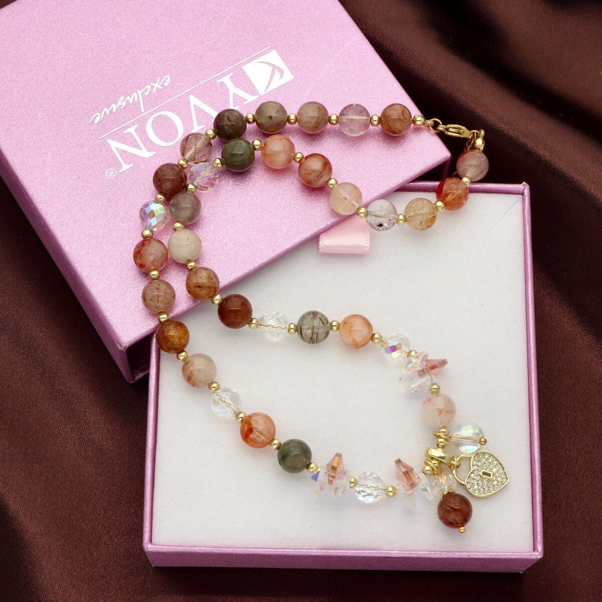 Ekskluzywny naszyjnik z kolekcji LOVELY STONES wykonany z najwyższej jakości mosiądzu oraz kwarcu rutylowego i kryształu górskiego. Długość: 42 cm + regulacja.