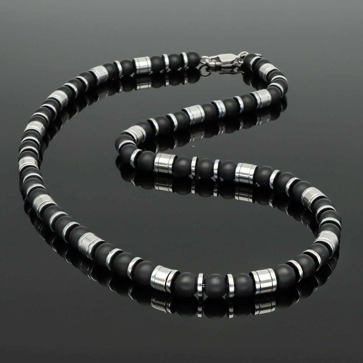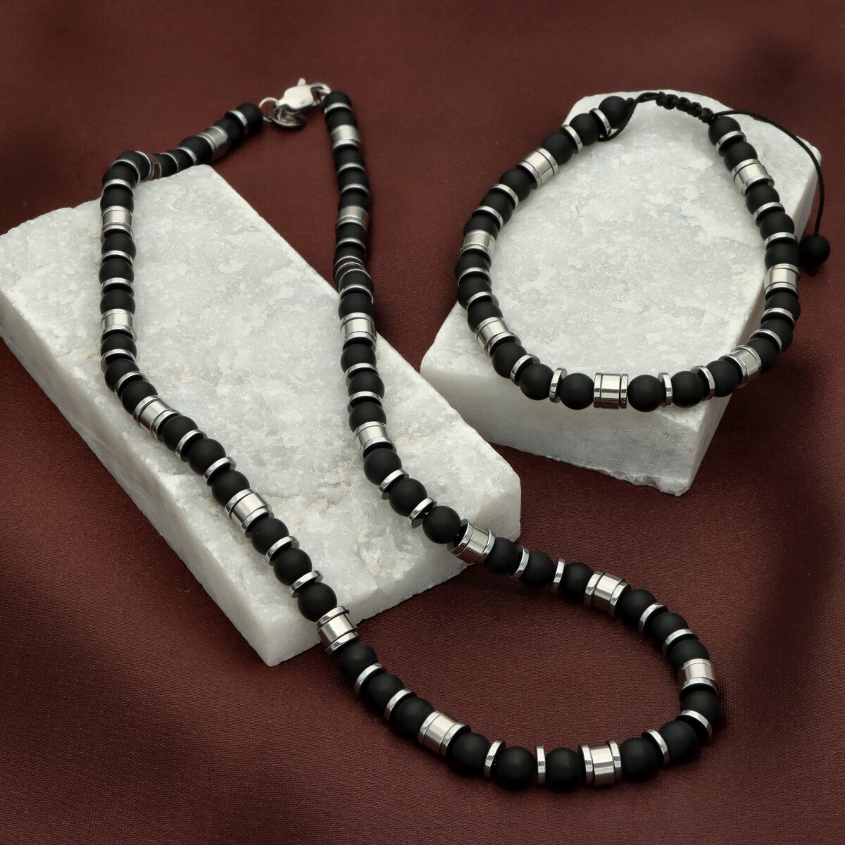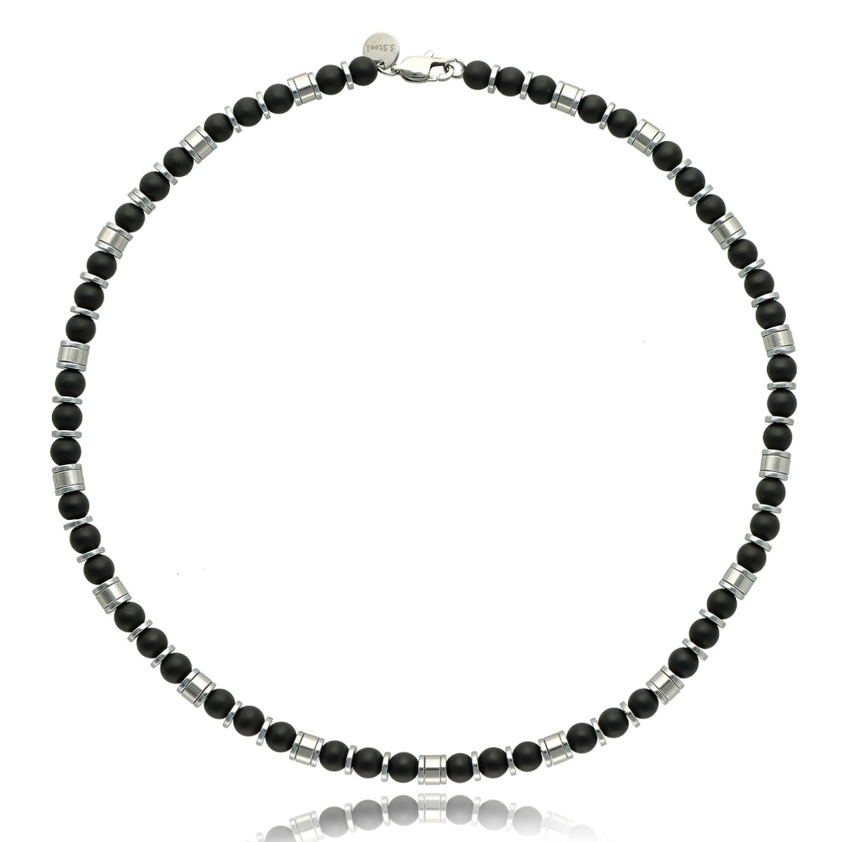 Naszyjnik męski YVES wykonany ze stali szlachetnej i naturalnych kamieni – AGAT. Długość 45 cm, wykończony w sposób gwarantujący wygodę codziennego noszenia. Stal 316L jest w pełni antyalergiczna, odporna na zarysowania i utratę koloru. Naszyjnik zapakowany w eleganckie pudełko, idealny na prezent. Model doskonale komponuje się z bransoletą o tym samym indeksie.