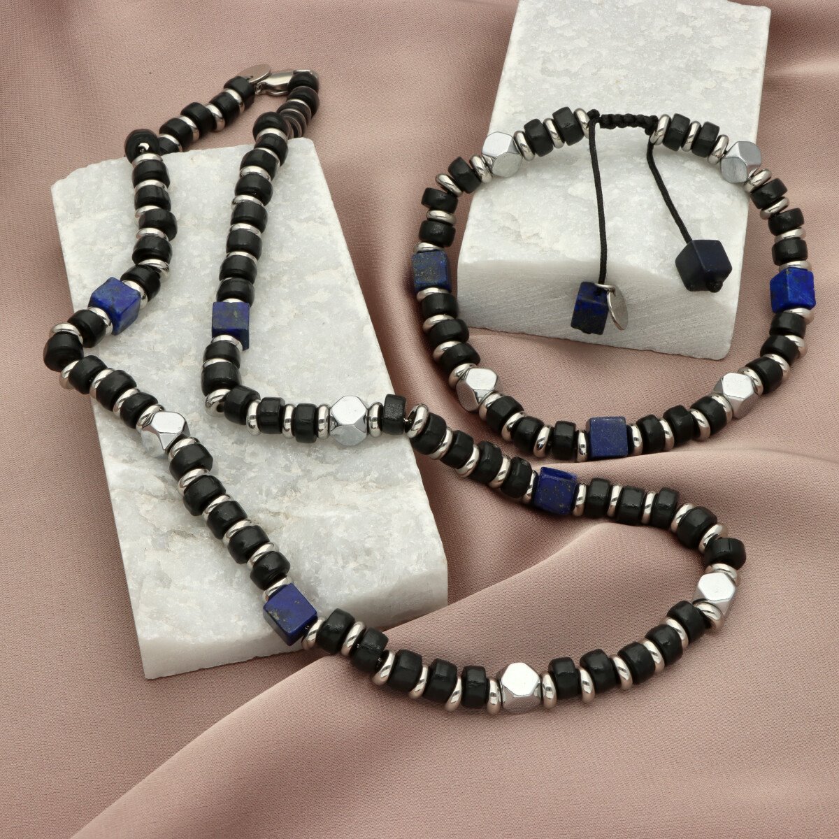 Naszyjnik męski YVES wykonany ze stali szlachetnej i naturalnych kamieni – LAPIS LAZULI. Długość 45 cm, wykończony w sposób gwarantujący wygodę codziennego noszenia. Stal 316L jest w pełni antyalergiczna, odporna na zarysowania i utratę koloru. Naszyjnik zapakowany w eleganckie pudełko, idealny na prezent. Model doskonale komponuje się z bransoletą o tym samym indeksie.