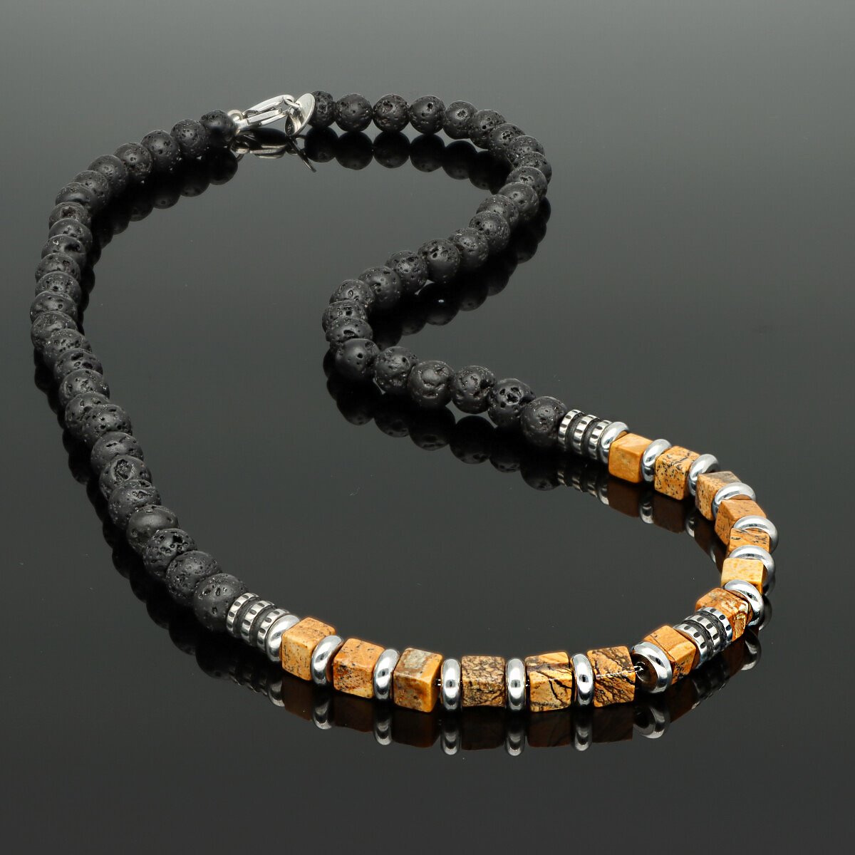 Naszyjnik męski z lawą i jaspisem NM97713