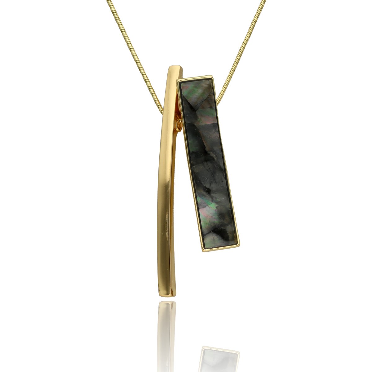 Elegancki, długi naszyjnik wykonany z metalu antyalergicznego, ozdobiony efektowną zawieszką o długości ok. 5 cm. Zawieszka została wykonana z naturalnej muszli szarej, tworząc harmonijne, przyciągające uwagę połączenie.