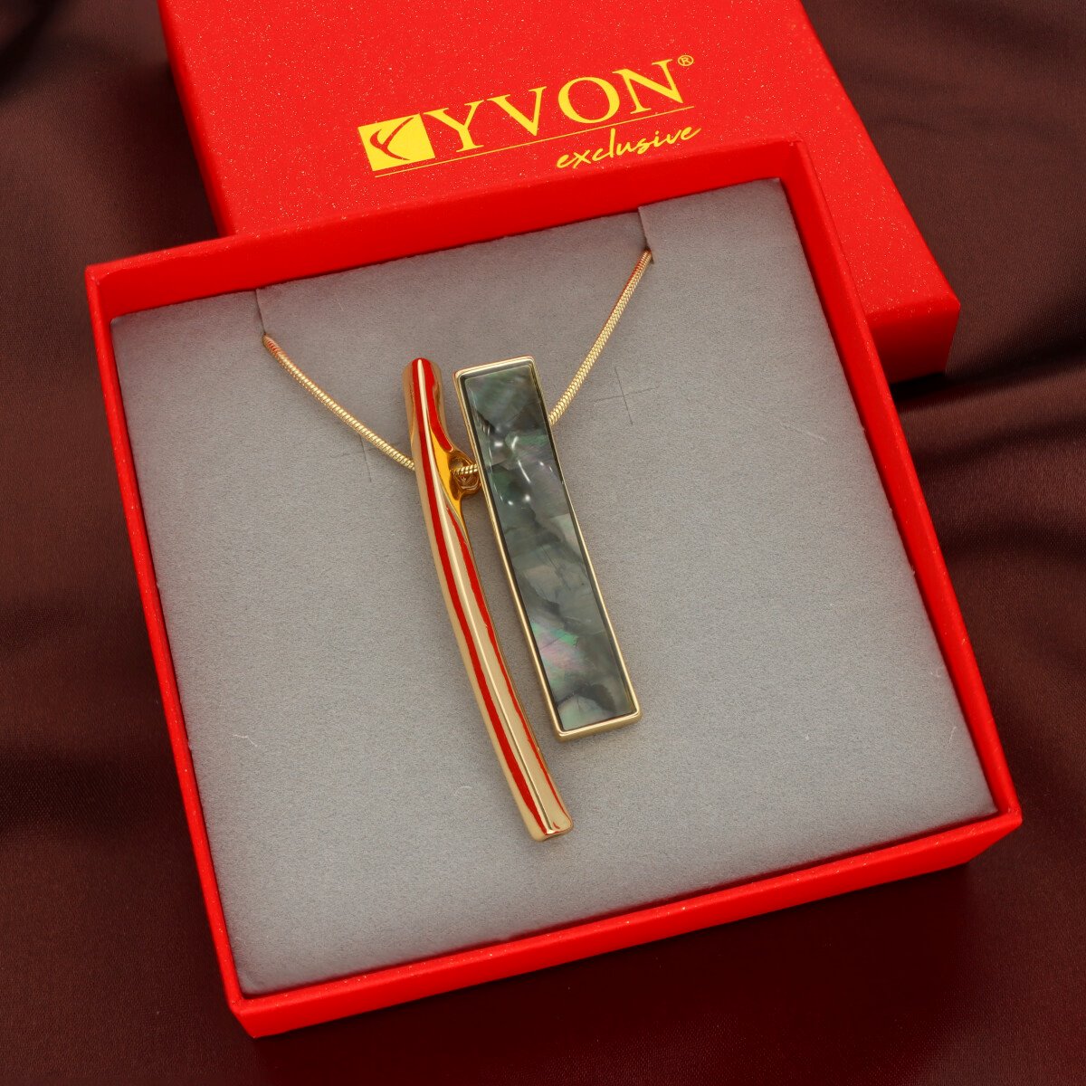 Naszyjnik zapakowany jest w efektowne czerwone pudełko.