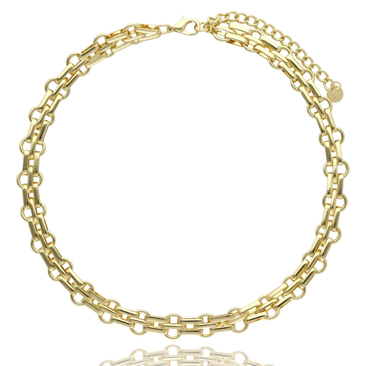 Opis produktu: Efektowny naszyjnik o nowoczesnym, wyrazistym charakterze, wykonany z wysokiej jakości hipoalergicznego metalu (zamak – stop cynku), zapewniającego komfort noszenia oraz trwałość. Model wyróżnia się eleganckim wykończeniem w modnym odcieniu light gold – jasnego, subtelnego złota inspirowanego włoskim stylem biżuterii. To właśnie ten odcień nadaje całości luksusowego, ale jednocześnie bardzo świeżego i współczesnego wyglądu. Tego typu złoto jest obecnie jednym z najmocniejszych trendów – jaśniejsze, bardziej „soft” niż klasyczne żółte złoto. Wyraziste ogniwa tworzą spójną, elegancką formę, która przyciąga uwagę i pięknie układa się na szyi. Naszyjnik doskonale sprawdzi się zarówno w codziennych stylizacjach, jak i w bardziej eleganckich zestawieniach. Do naszyjnika przewidziana jest pasująca bransoletka o tym samym indeksie, tworząca spójny komplet. Długość naszyjnika: 44 cm Materiał: metal hipoalergiczny (zamak)