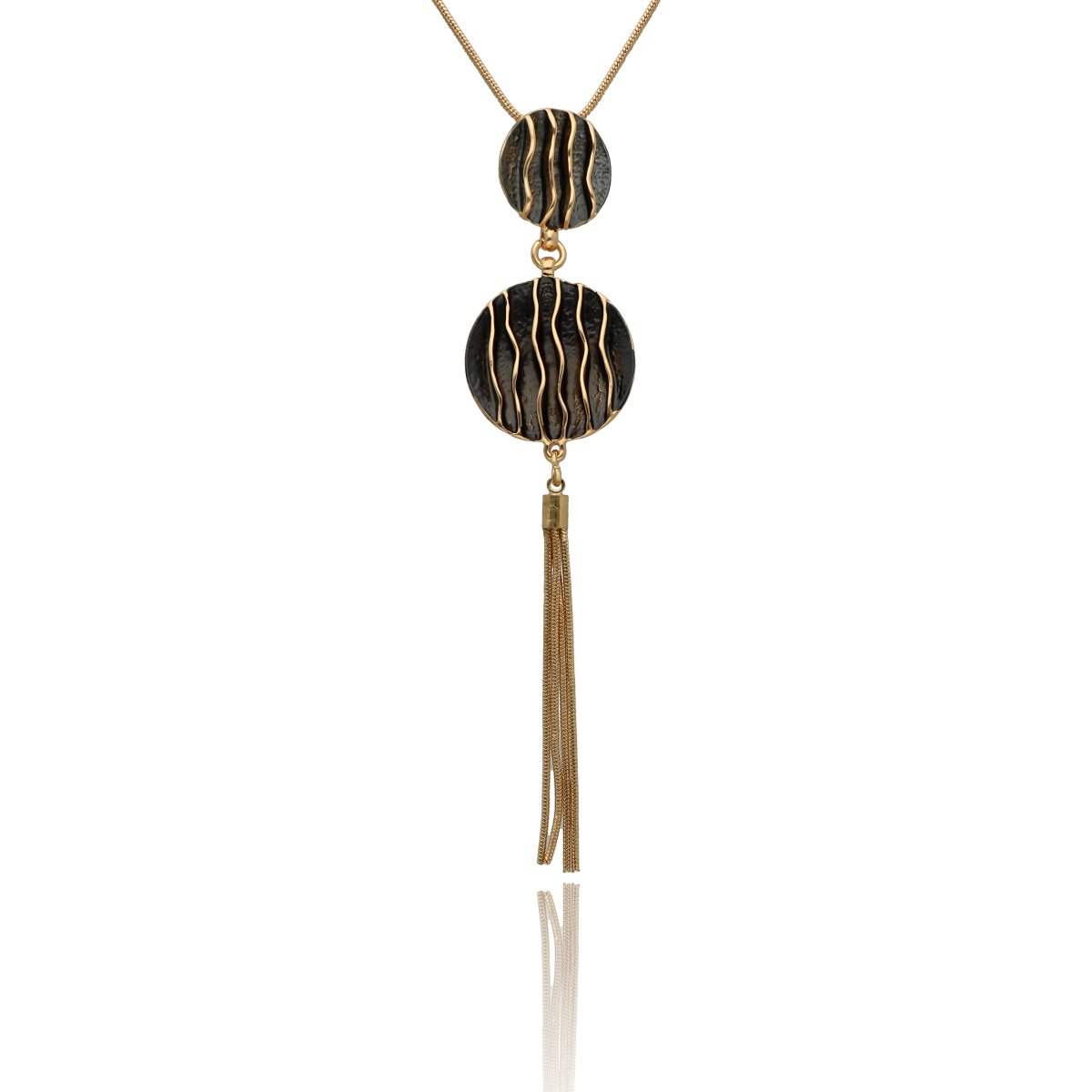 Naszyjnik z kolekcji YVON BIŻUTERIA ARTYSTYCZNA, wykonany z metalu hipoalergicznego. Zdobiony emaliowanymi elementami, które tworzą elegancką, harmonijną kompozycję. Naszyjnik o długości 65 cm z możliwością regulacji o dodatkowe 8 cm. To wyjątkowy naszyjnik, który podkreśla kobiecą klasę i artystyczne wyczucie stylu. Do kompletu polecamy kolczyki, bransoletkę i pierścionek.
