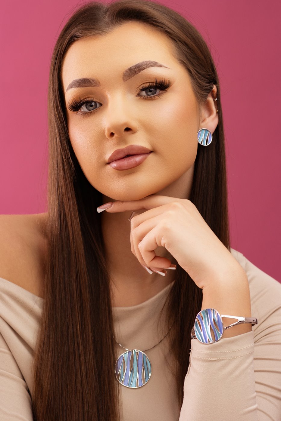 Opis produktu: Naszyjnik o długości 42 cm + 8 cm przedłużki, z ozdobnym elementem w formie okrągłej zawieszki o średnicy ok. 5 cm. Nowoczesny, geometryczny wzór z nieregularnymi liniami nadaje biżuterii unikalnego charakteru i przyciąga uwagę. Naszyjnik wykonany z hipoalergicznego metalu (zamak – stop cynku, bezpieczny dla wrażliwej skóry), ozdobiony kolorową emalią. Do kompletu szukaj pasującej bransoletki i kolczyków o tym samym indeksie numerycznym.