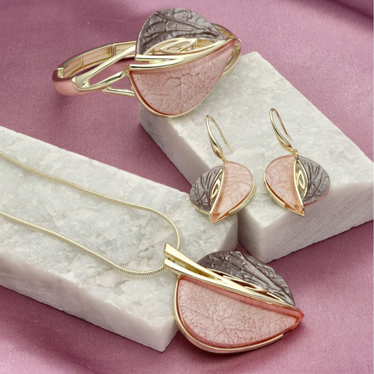 Opis produktu: Naszyjnik o długości 42 cm + 8 cm przedłużki, z ozdobnym elementem w formie nowoczesnego, artystycznego liścia o długości ok. 5 cm. Nietypowa, przestrzenna forma przyciąga uwagę i nadaje biżuterii wyjątkowego charakteru. Naszyjnik wykonany z hipoalergicznego metalu (zamak – stop cynku, bezpieczny dla wrażliwej skóry), ozdobiony kolorową emalią oraz efektowną żywicą z wyraźnym efektem głębi, mieniącą się jak opal. Do kompletu szukaj pasującej bransoletki i kolczyków o tym samym indeksie numerycznym.
