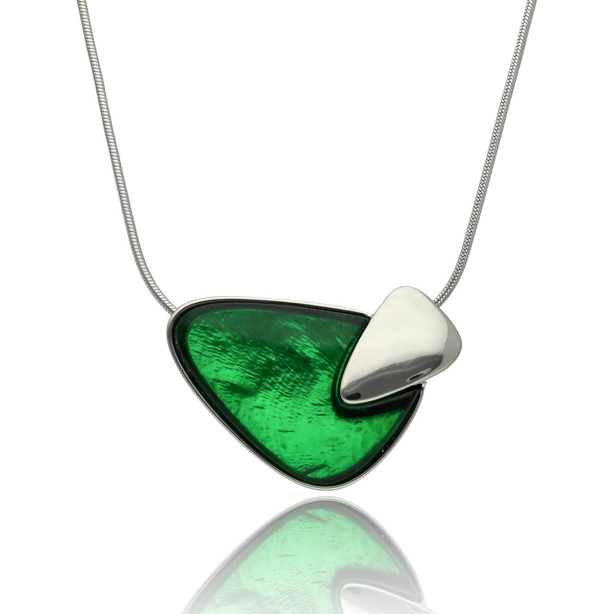 Efektowny dekoltowy naszyjnik wykonany z antyalergicznego metalu i kolorowej żywicy. Długość 45 cm + 8 cm regulacja. Szukaj do kompletu bransoletki i kolczyków o tym samym indeksie numerycznym.