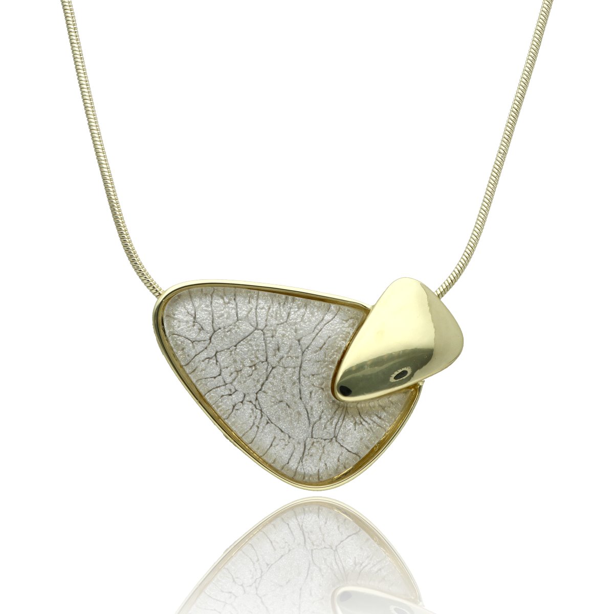 Efektowny dekoltowy naszyjnik wykonany z antyalergicznego metalu i kolorowej żywicy. Długość 45 cm + 8 cm regulacja. Szukaj do kompletu bransoletki i kolczyków o tym samym indeksie numerycznym.