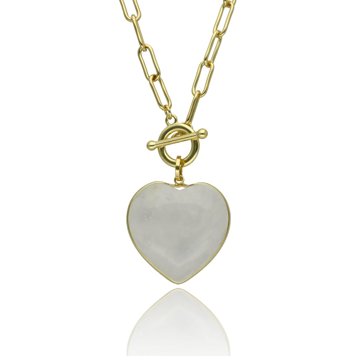 Elegancki, dekoltowy naszyjnik z naturalnym jadeitem mlecznym w kształcie serca. Kamień wyróżnia się subtelną, kremowo-białą barwą z delikatnym, półtransparentnym efektem, który nadaje całości lekkości i szlachetnego charakteru.
